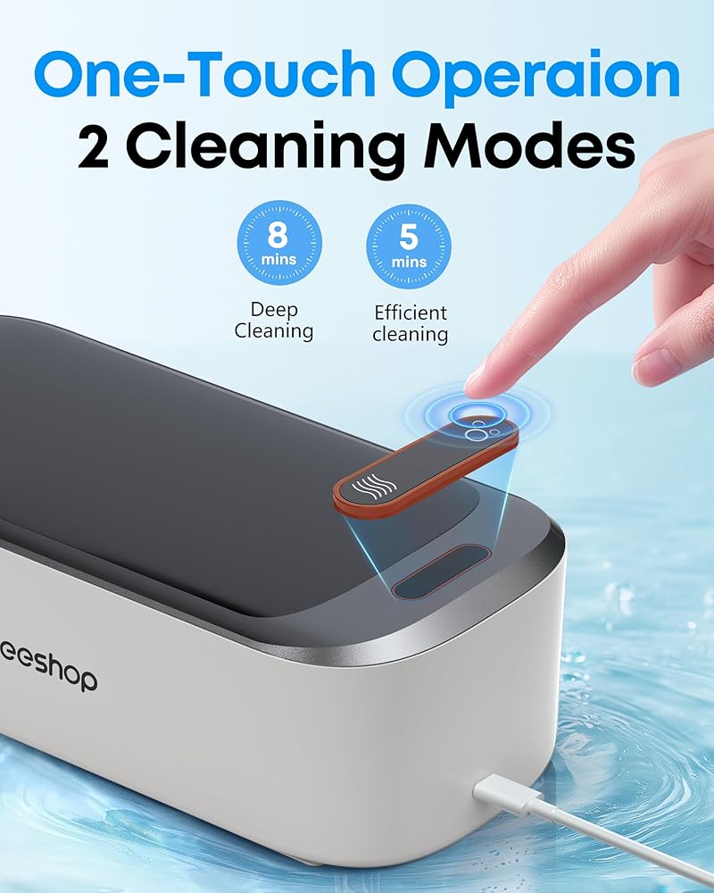 【سهلة التشغيل】 مصممة باستخدام أزرار دالة اللمس 2 ، ما عليك سوى إضافة الماء ولمس زر وضع العمل الذي تحتاجه ، وسيتوقف المنظف تلقائيًا عندما يصل إلى الوقت المحدد. حتى الأشخاص الذين ليس لديهم تجربة تنظيف يمكن أن يستمتعوا بسهولة بالتنظيف الفعال! (يرجى التأكد من أن جهد إمدادات الطاقة يتطابق مع مواصفات المنظف بالموجات فوق الصوتية لتجنب التحميل الزائد (متوافق فقط مع 12V/2A).)