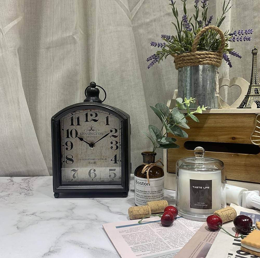 ساعة حائط رترو صغيرة بتصميم عتيق، ساعة مكتب انيقة معدنية انيقة للرفوف وديكور المكتب وديكور الحائط والطاولة