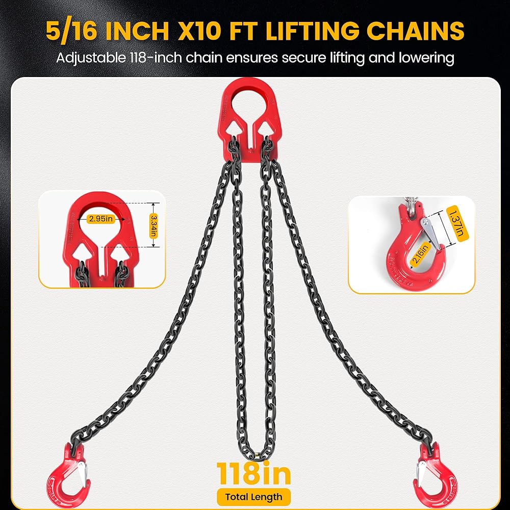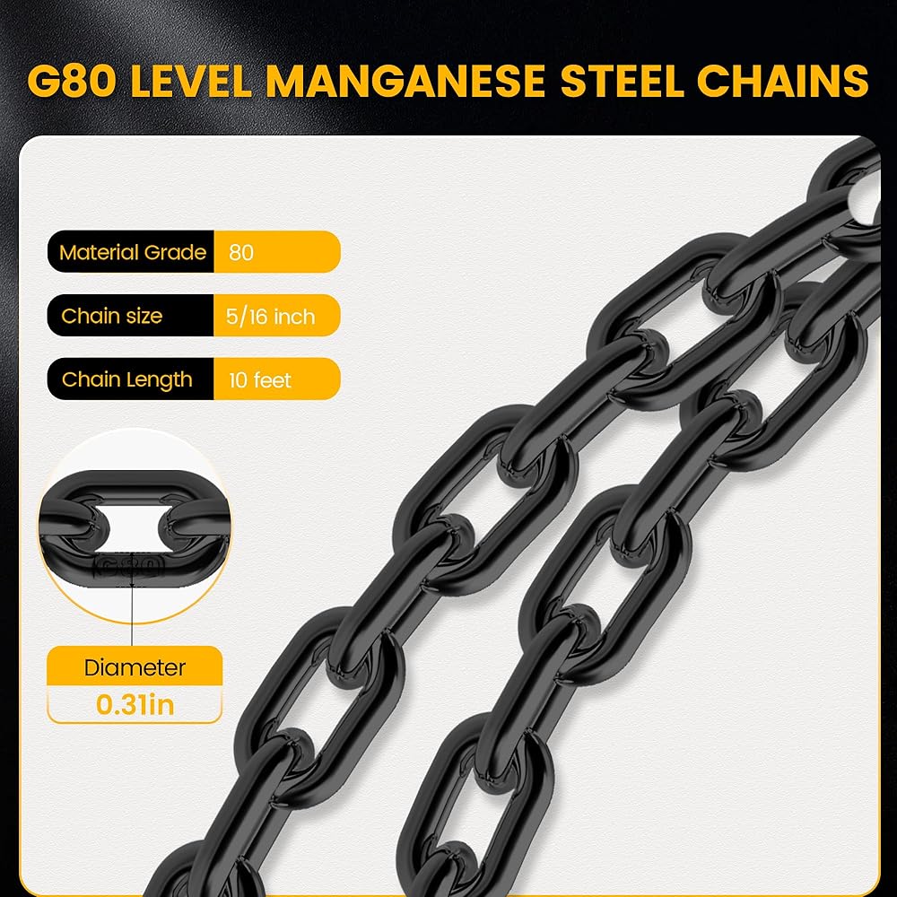 السنانير الفورية القابلة للتعديل قابلة للتعديل : السنانير المقوى مع المزالج المحملة نابضات مفصلية على أي ارتباط سلسلة في ثوان. لا توجد أدوات مطلوبة - اضبط طول الرافعة من 3 أقدام إلى 10 أقدام لأحمال الرافعة الشوكية أو تزوير الفضاء المحصور