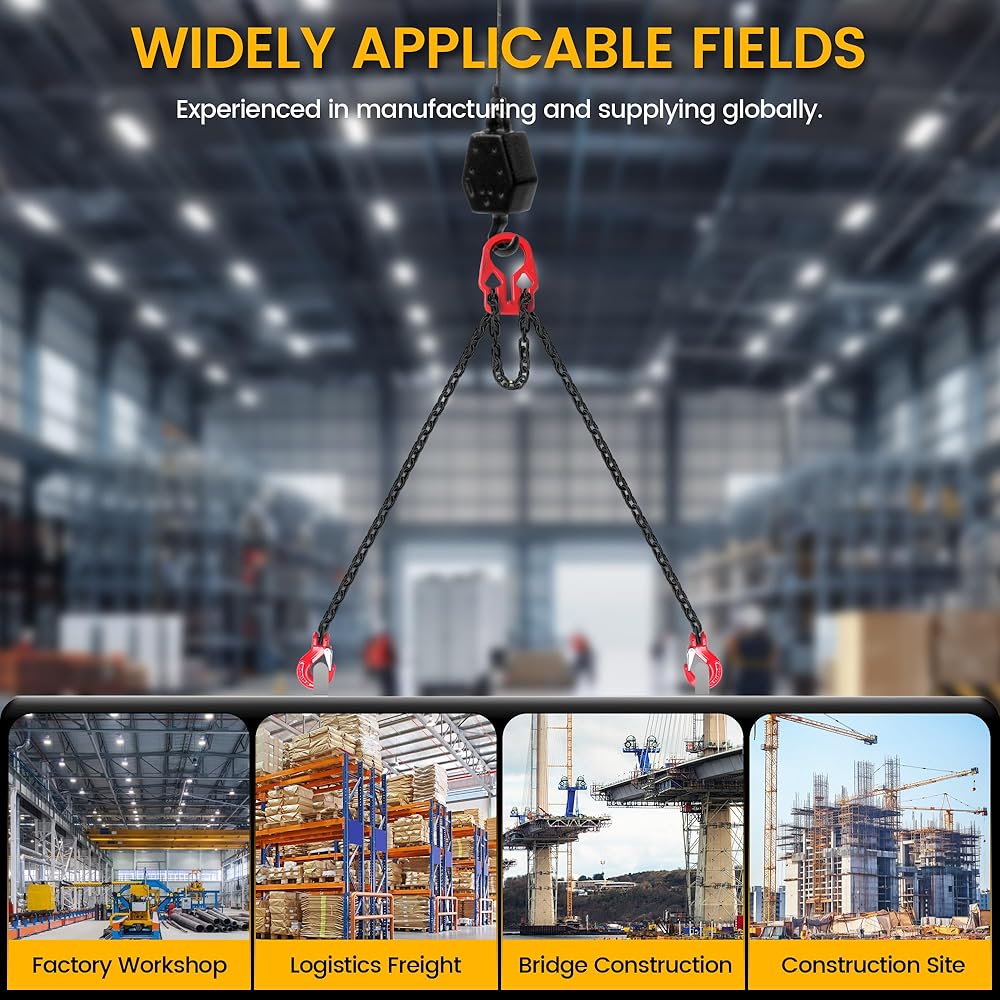 توافق الحمل العالمي : يعمل مع جميع رافعات السلسلة وكتل الرافعة ومجلدات الحمل. يتضمن قفازات مقاومة للارتداء مجانية - أحمال غير متوازنة آمنة مثل أجزاء الآلات أو عوارض فولاذية مع انزلاق صفر