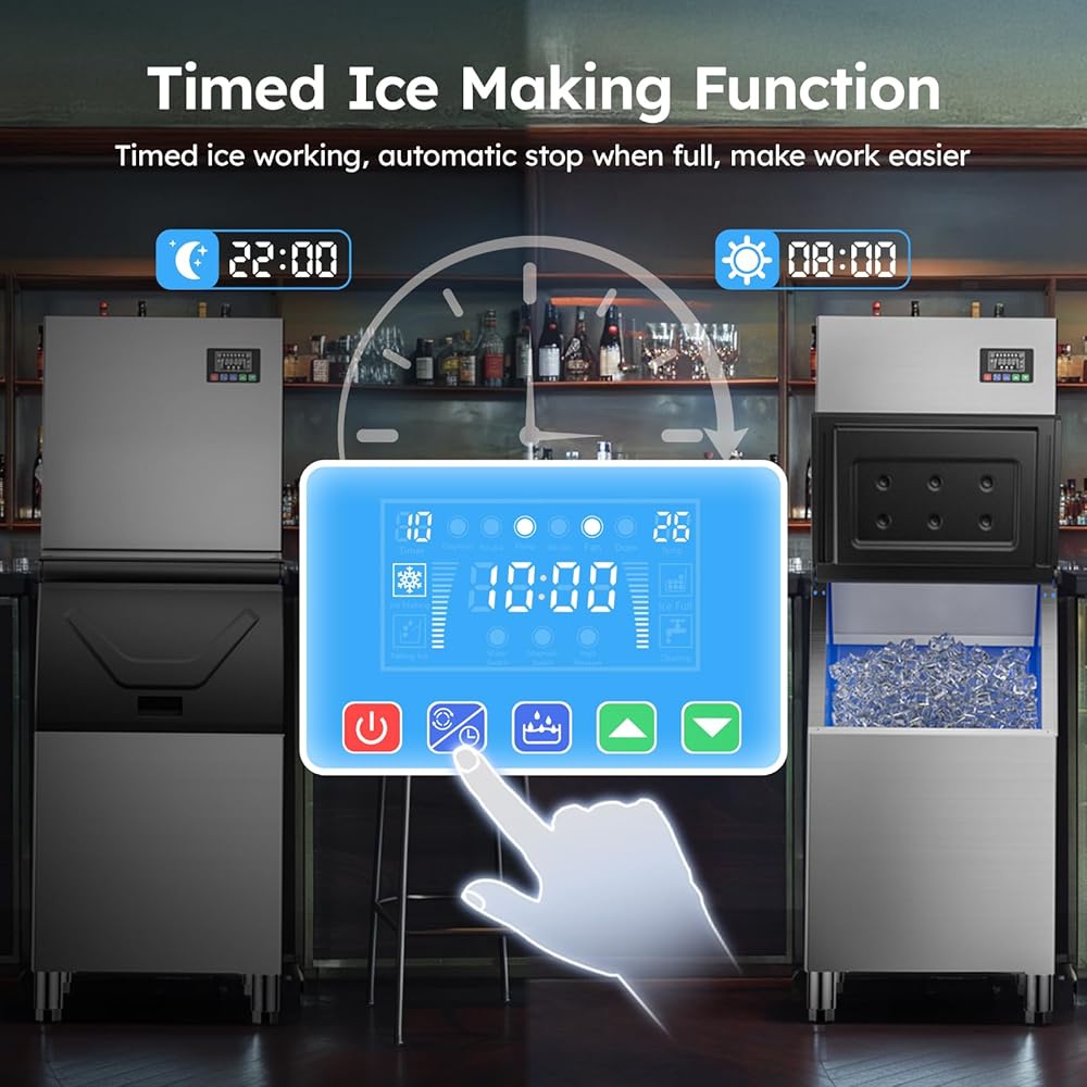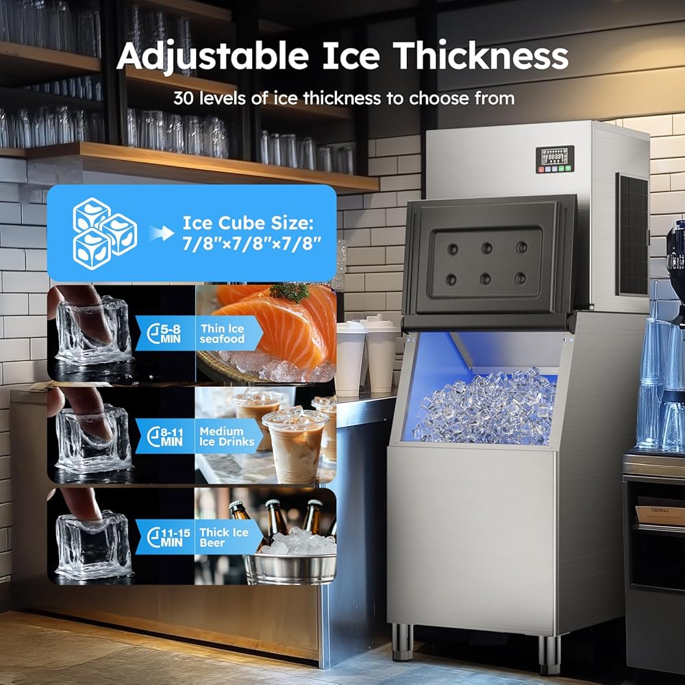 سماكة الجليد القابلة للتعديل: يحتوي صانع الجليد على 30 مستوى من سماكة الجليد للاختيار من بينها ، وسمك الجليد المختلفة مناسبة لسيناريوهات الاستخدام المختلفة. يتيح لك اختيار سماكة الجليد التفصيلية استخدام جليد أكثر ملاءمة في سيناريوهات الاستخدام المختلفة. إنه مناسب جدًا للمقاهي ، والبارات ، والمطاعم ، والمنازل ، والمكاتب ، وما إلى ذلك (حجم مكعب الثلج: 7/8 ″ × 7/8 ″ × 7/8 ″)