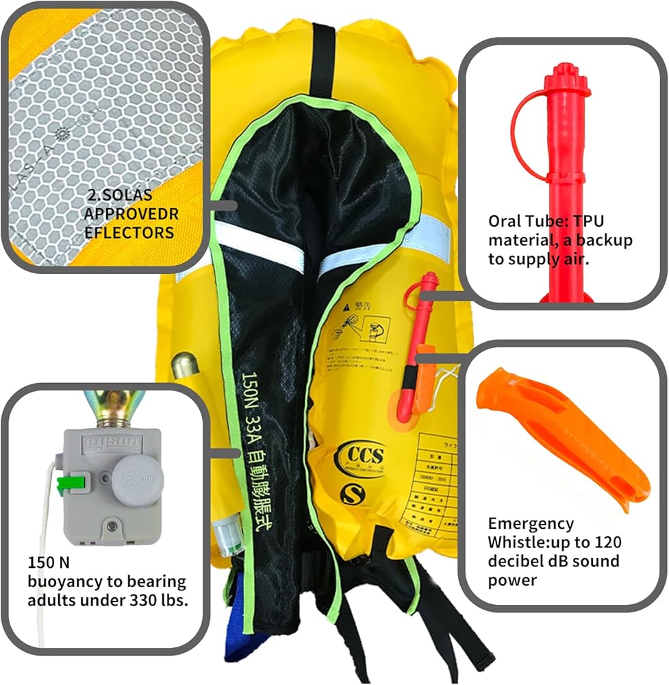 ازدهار للغاية: يتضخم PFD لدينا في 2-3 ثوان ، ورفع رأسك فوق الماء. مع الطفو الكافي للبالغين البالغ 330 رطلاً ، يضمن السلامة والثقة في أي رياضة مائية - من المنحدرات إلى الطيران. ما عليك سوى شد المقبض اليدوي للدعم الفوري ، مما يجعل مغامراتك مثيرة ولكنها آمنة.