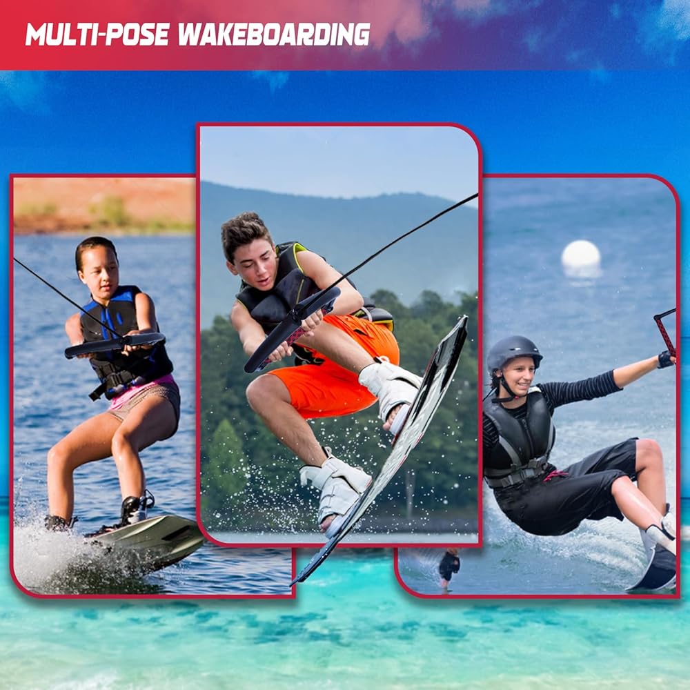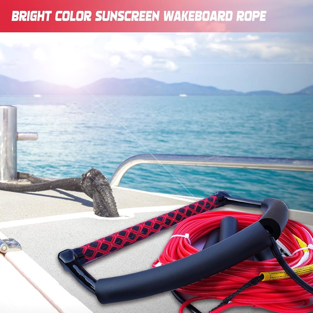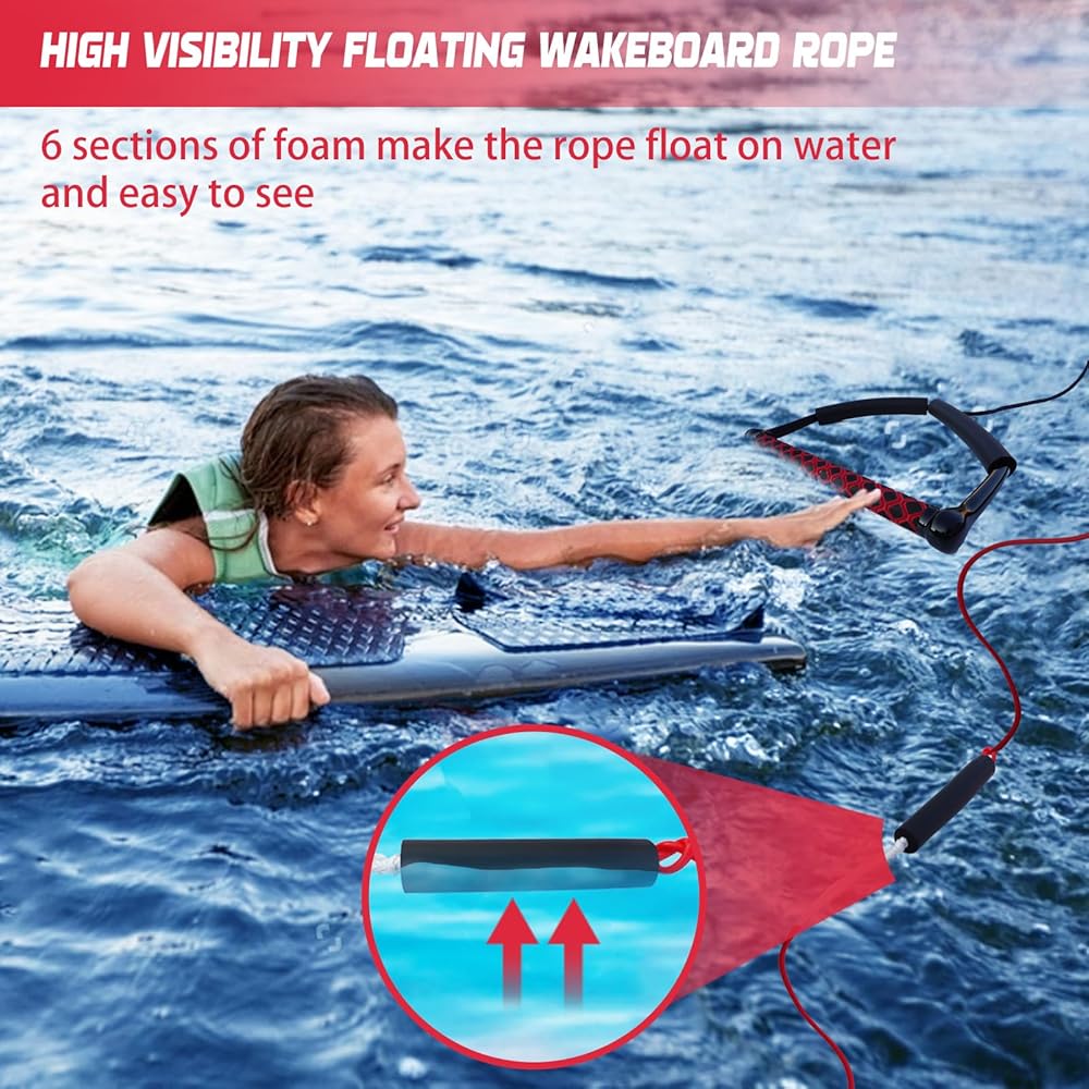 Floating Design: Equipped with 6 foam float sections, the wakeboarding rope stays visible and afloat, keeping it away from the boat's propeller for added safety and easy retrieval