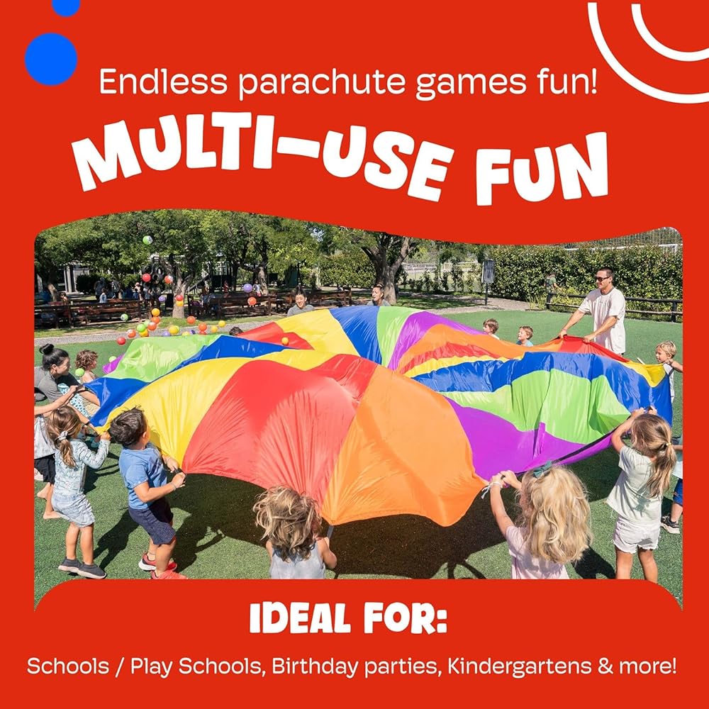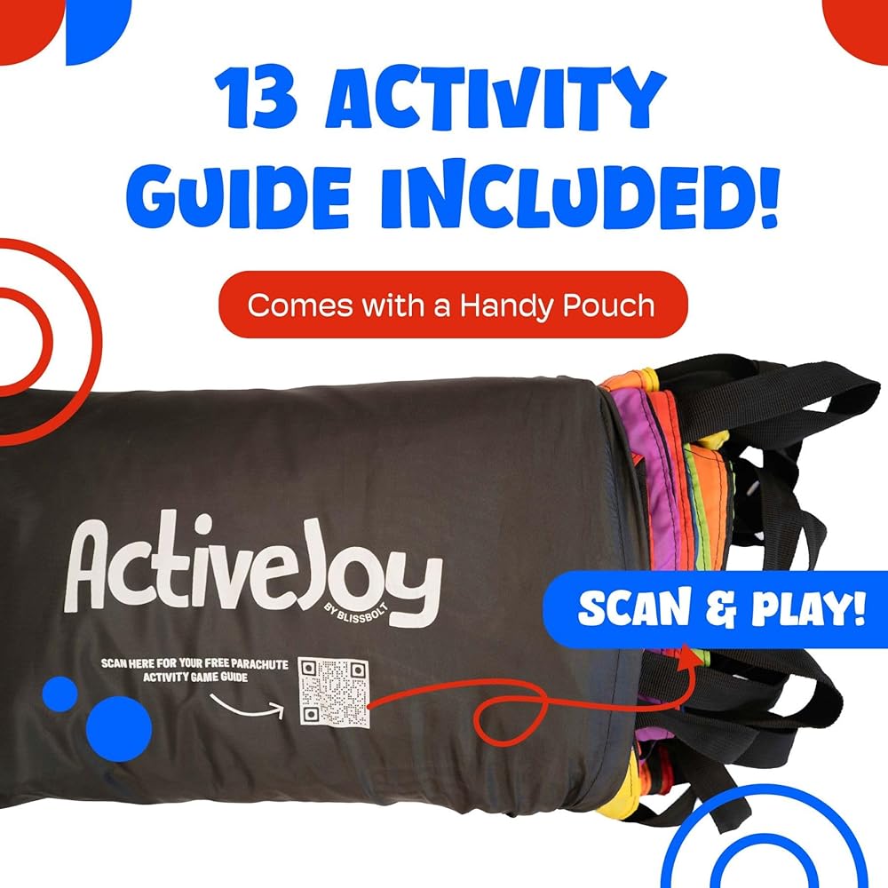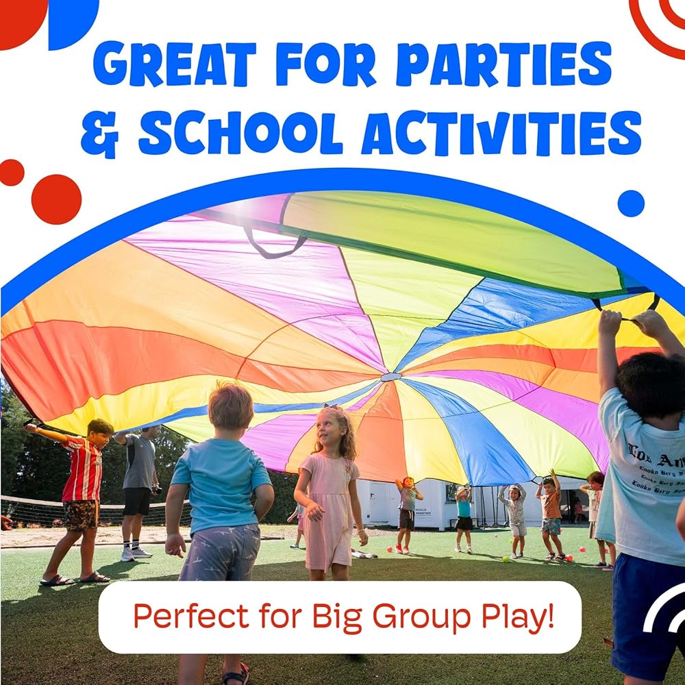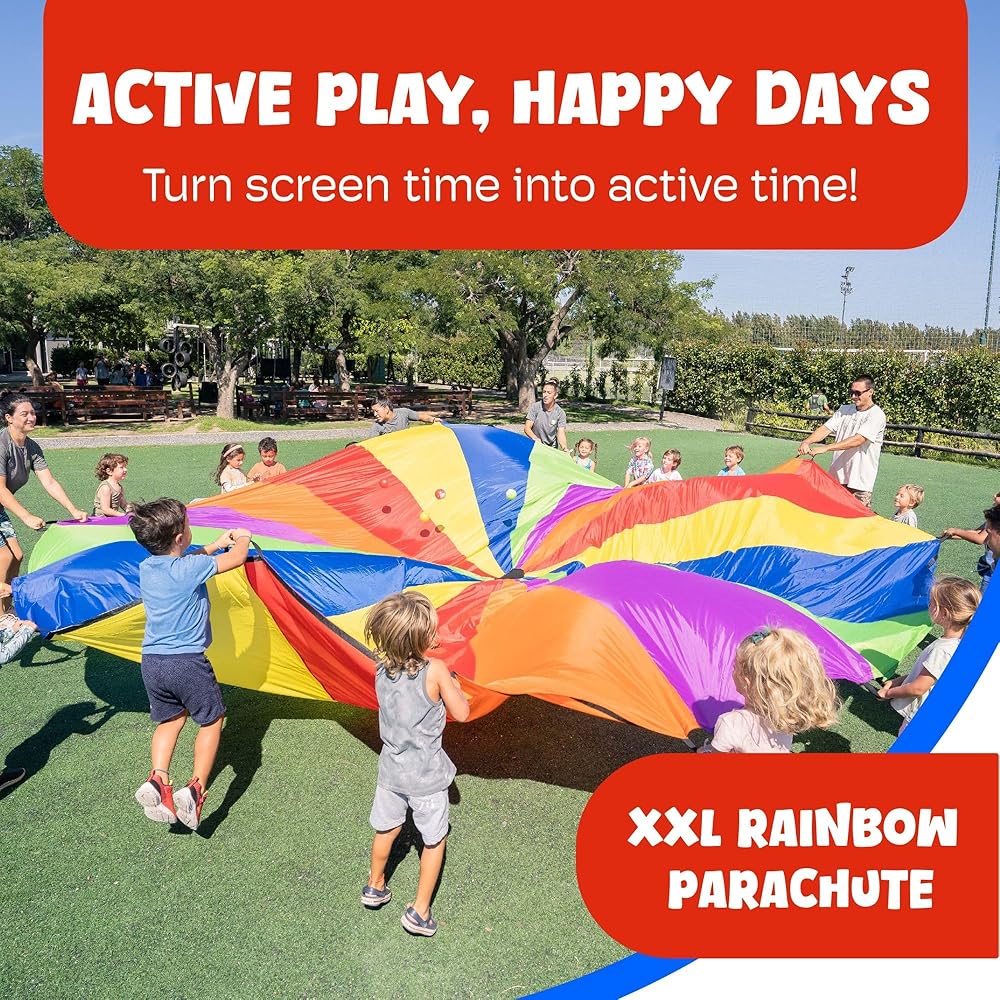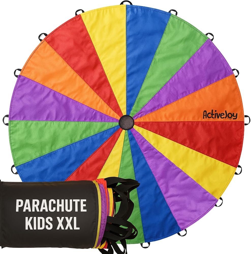 ActiveJoy - Parachute for Kids - 12ft / 20ft - Rainbow Parachute Toy مع مقابض - رائعة لفئة الصالة الرياضية واليوم الميداني والألعاب الخارجية