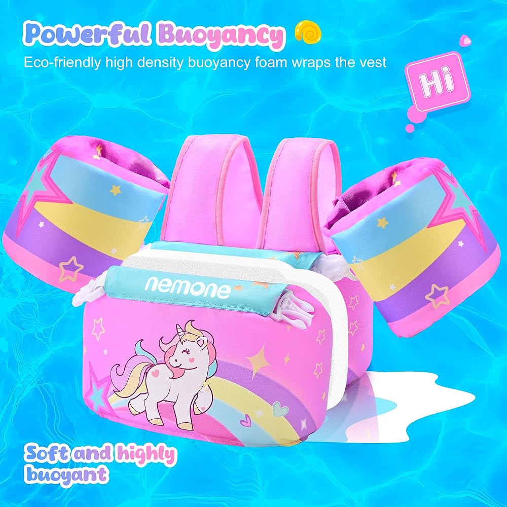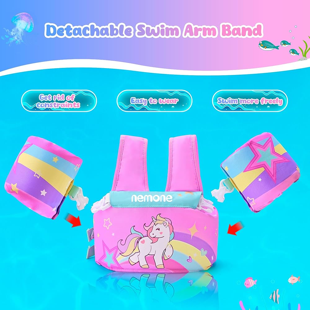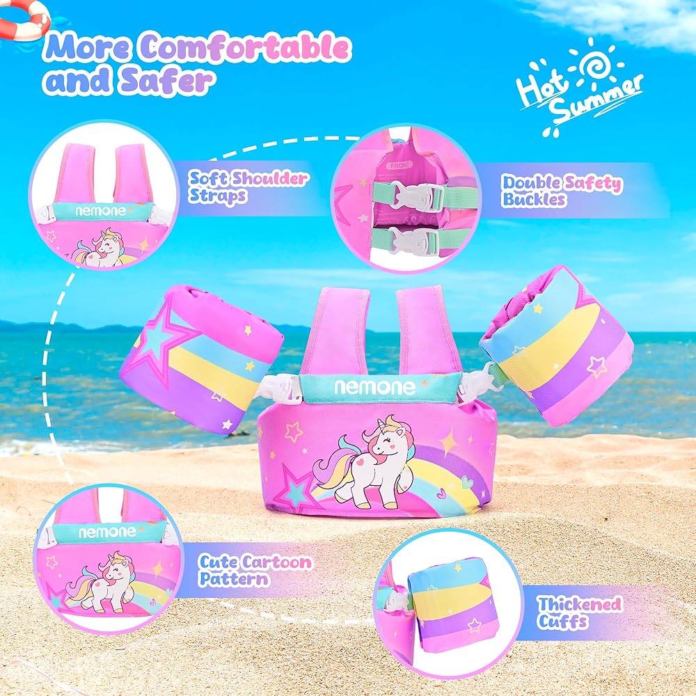 3 من كل 1 يرتدي أسلوبًا - تم تصميم الأكمام الذراع لسترة السباحة الخاصة بنا لتكون قابلة للفصل ، يمكن للأطفال اختيار ارتداء أكمام الذراع فقط ، أو يمكنهم اختيار ارتدائها مع السترة. ما عليك سوى ربط الإبزيم في الخلف ، وارتداءها بسيطة وسريعة مثل ارتداء الملابس