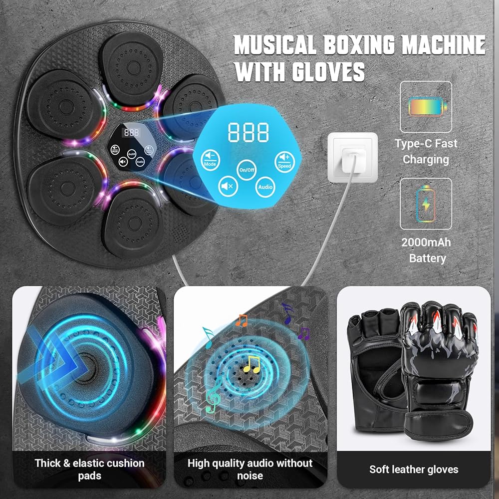 🎵 آلة ملاكمة موسيقى Bluetooth: يمكن لآلة الملاكمة للبالغين والكبار بمزامنة إيقاع الملاكمة مع إيقاع الموسيقى ، والتمتع موسيقاك المفضلة وإيقاعك كما يحلو لك. مع 9 أوضاع محددة مسبقًا ، 6 سرعات ، و 3 مستويات حساسية للتدريبات الديناميكية. مثالي من بين المبتدئين غير الرسميين إلى اللاعبين المتوسطين.