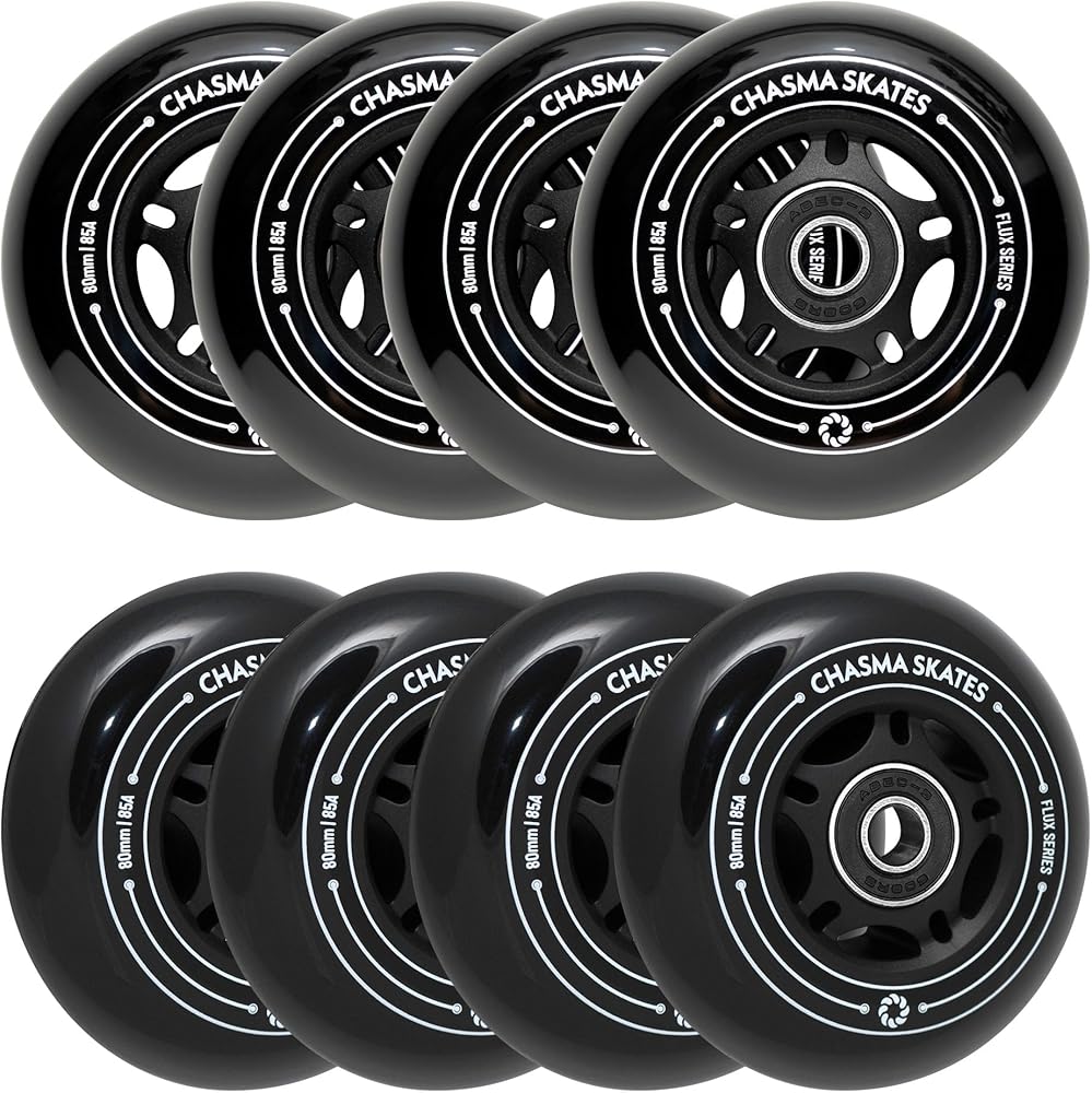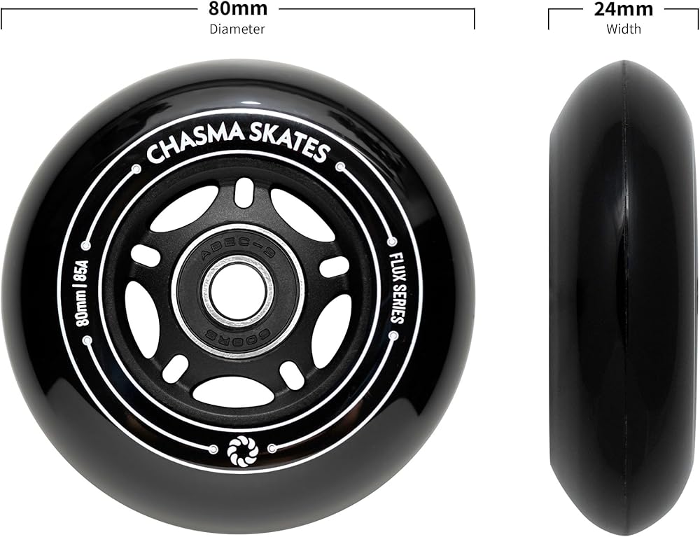 Flux 3 80 مم عجلات تزلج مضمّنة 85A للتزلج على الإسفلت أو الهوكي في الهواء الطلق/داخلي ، عجلات تزلج بديلة ، 8 عبوات مع محامل