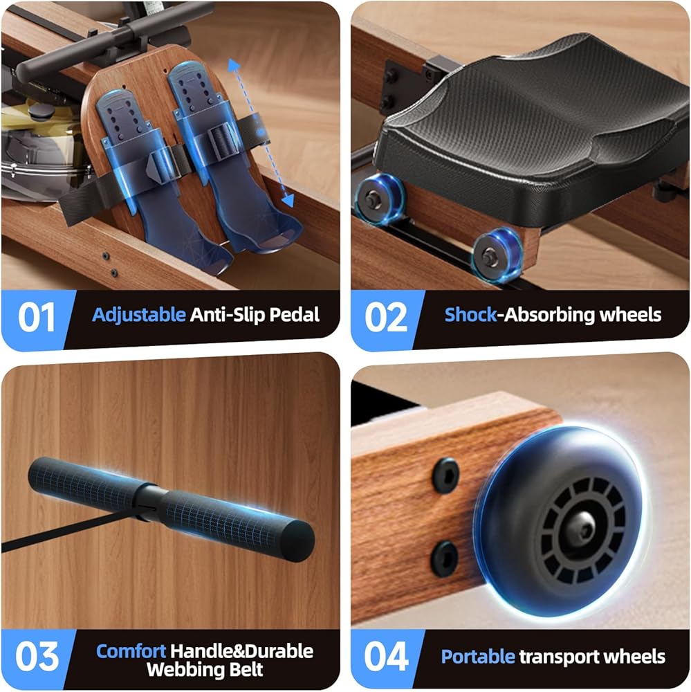 【Real Resistance Comes from Real Movement】Real resistance doesn't come from pulling harder once — it comes from moving right, every time.Push with your legs, swing with your core, and pull with your arms — that's when you'll feel the real power. This rowing machine is built for endurance training, where resistance builds with rhythm and consistency.It's smooth, joint-friendly, and gets more challenging the longer you row — just like real rowing.
