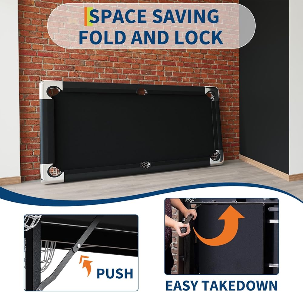 NO ASSEMBLY REQUIRED: Ready to play out of the box, simply fold the legs out; Perfect for game rooms, man caves, offices, or anyone who wants a premium, ultra stable table without the hassle of a bulky alternatives that are impossible to move.