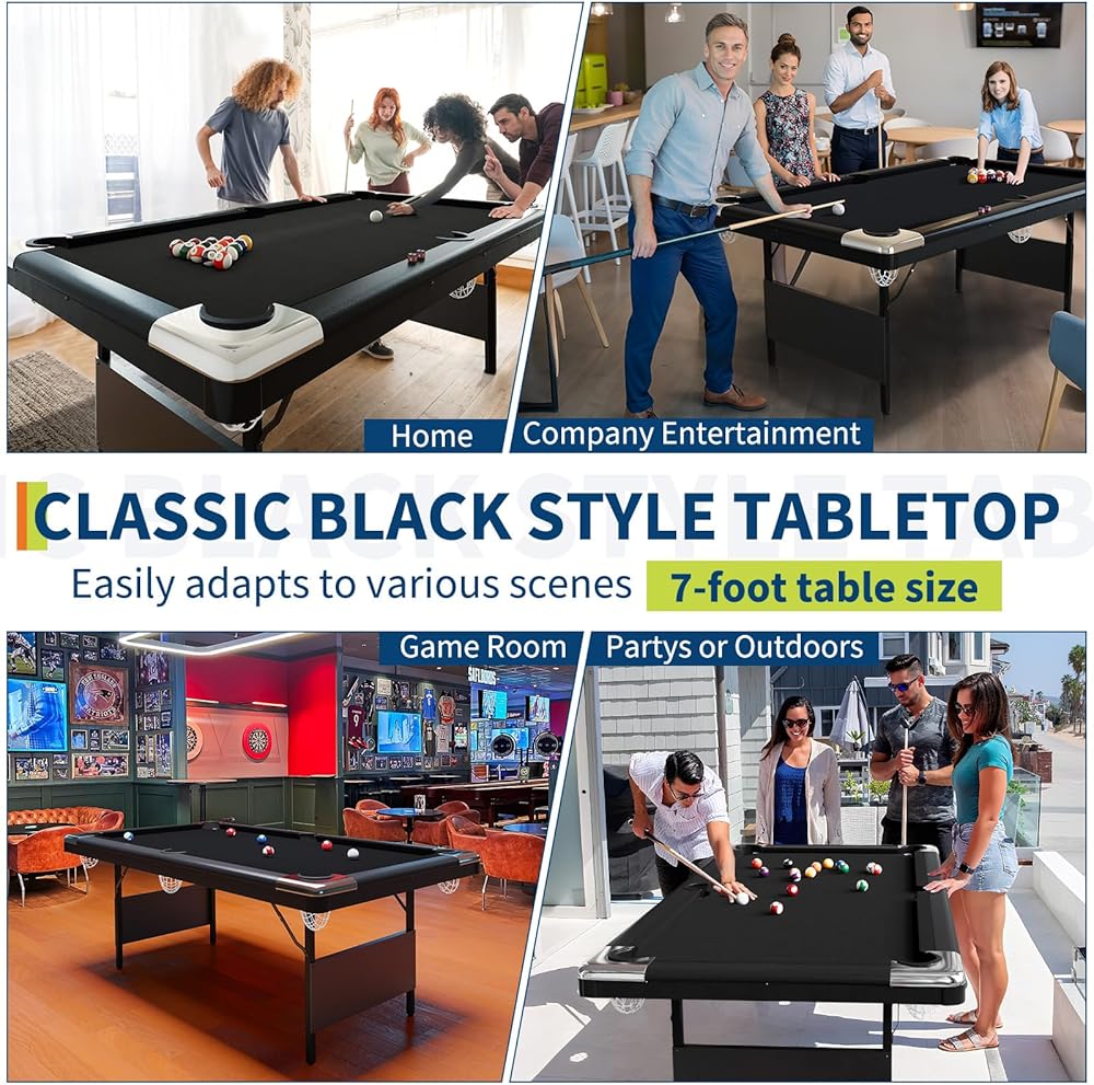 COMPLETE ACCESSORIES: Our portable billiard table is equipped with a complete set of accessories, including 2 billiard sticks, 1 set of balls, 1 tripod, 2 Chalk and 1 brush, allowing you to enjoy exciting billiard games anytime, anywhere.
