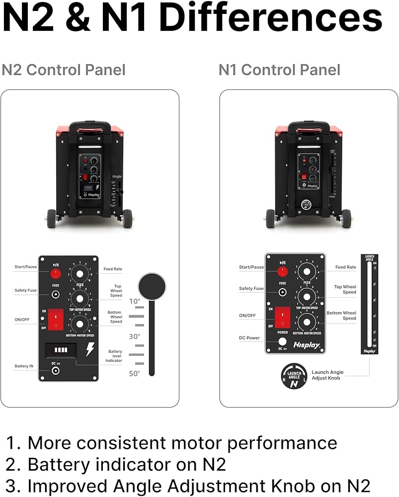 تضمنت ميزة السيطرة الدورانية: توفر جهاز Nisplay N1 Ball أيضًا تحكمًا غير متكافئ في الجهاز في نقطة السعر هذه. يمكن ضبط الدوران الكرة لكل من Topspin و Backspin وعلى مستويات مختلفة.