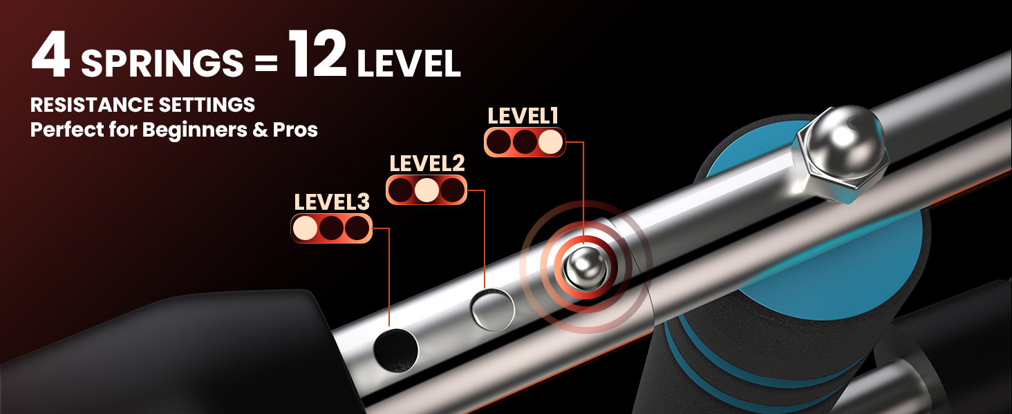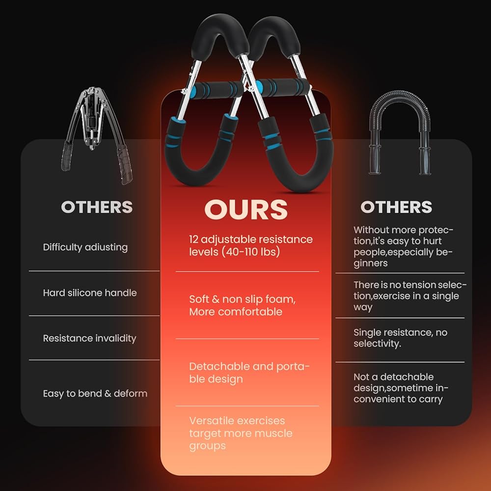 【مقاومة قابلة للتعديل للرجال والنساء】 تتميز بمجموعتين من قضبان الزنبرك مع 12 مستوى مقاومة قابل للتعديل (40-60 رطلاً / 70-110 رطلاً) ، تم تصميم مدرب ذراعنا التويتر ليتطابق مع أي مستوى لياقة-مثبتة على الاحماء أو إعادة التأهيل أو النزاع العضلي المتقدم.
