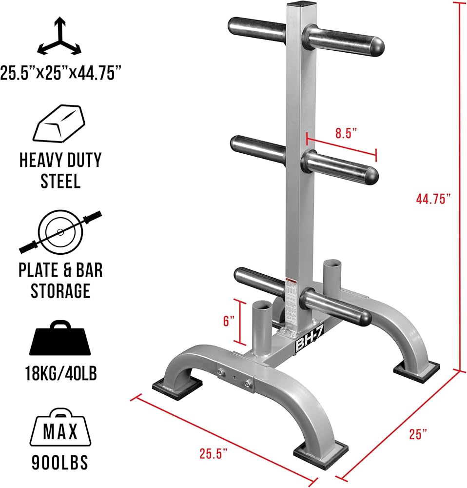 • ثقيل- تم تصميم BH-9 من إطار فولاذي "× 2" 2 "× 2" لشجرة تخزين صفيحة قوية ومتينة في صالة الألعاب الرياضية المنزلية! تغلف أغطية نهاية المطاط كل قدم لتعزيز الاستقرار ومنع الأضرار التي لحقت بها الأرضية. يحمل ما يصل إلى 810 رطل من لوحات الوزن الأولمبي!