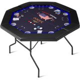 السطح المهني: طاولة البوكر السوداء المغطاة بالمخمل السوداء المغطاة بالطي. يقيس الحقل 48 "L ، 48" W ، و 30 "H. بالإضافة إلى البوكر التقليدي ، يمكنك تجميع الألغاز ولعب ألعاب الطاولة المفضلة لديك مع هذا الجدول متعدد الاستخدامات.