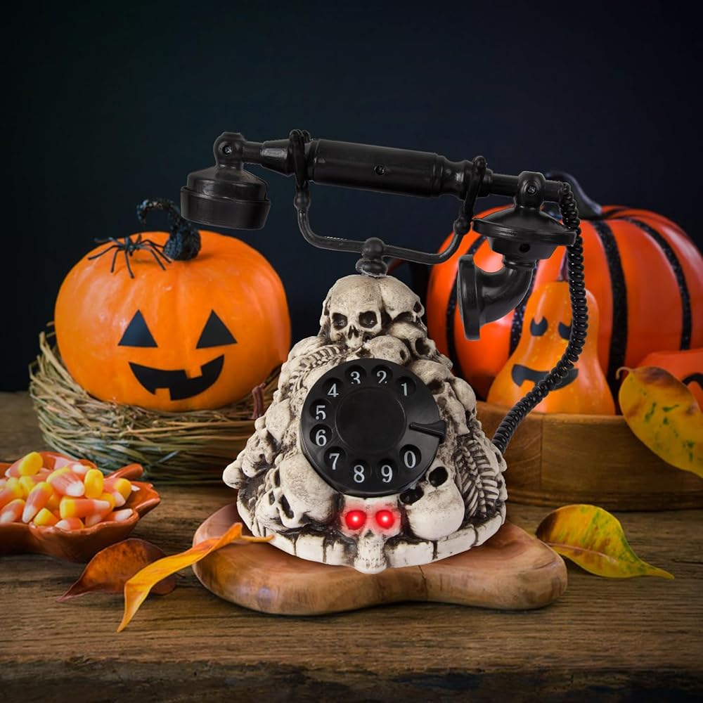 Haunted Halloween Phone: This is a Halloween-themed decorative phone that rings like a real phone and plays spine-chilling incoming call messages. Use this haunted rotary dial phone to add a vintage-style indoor Halloween decoration to your party.