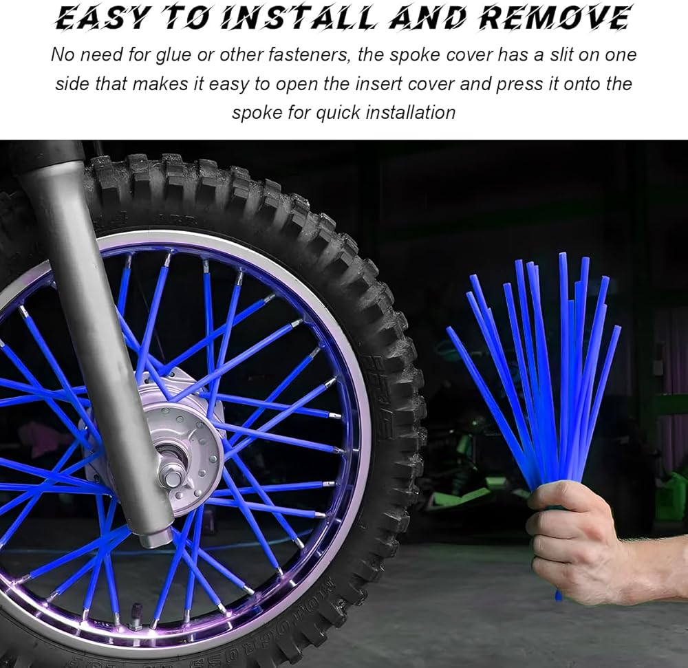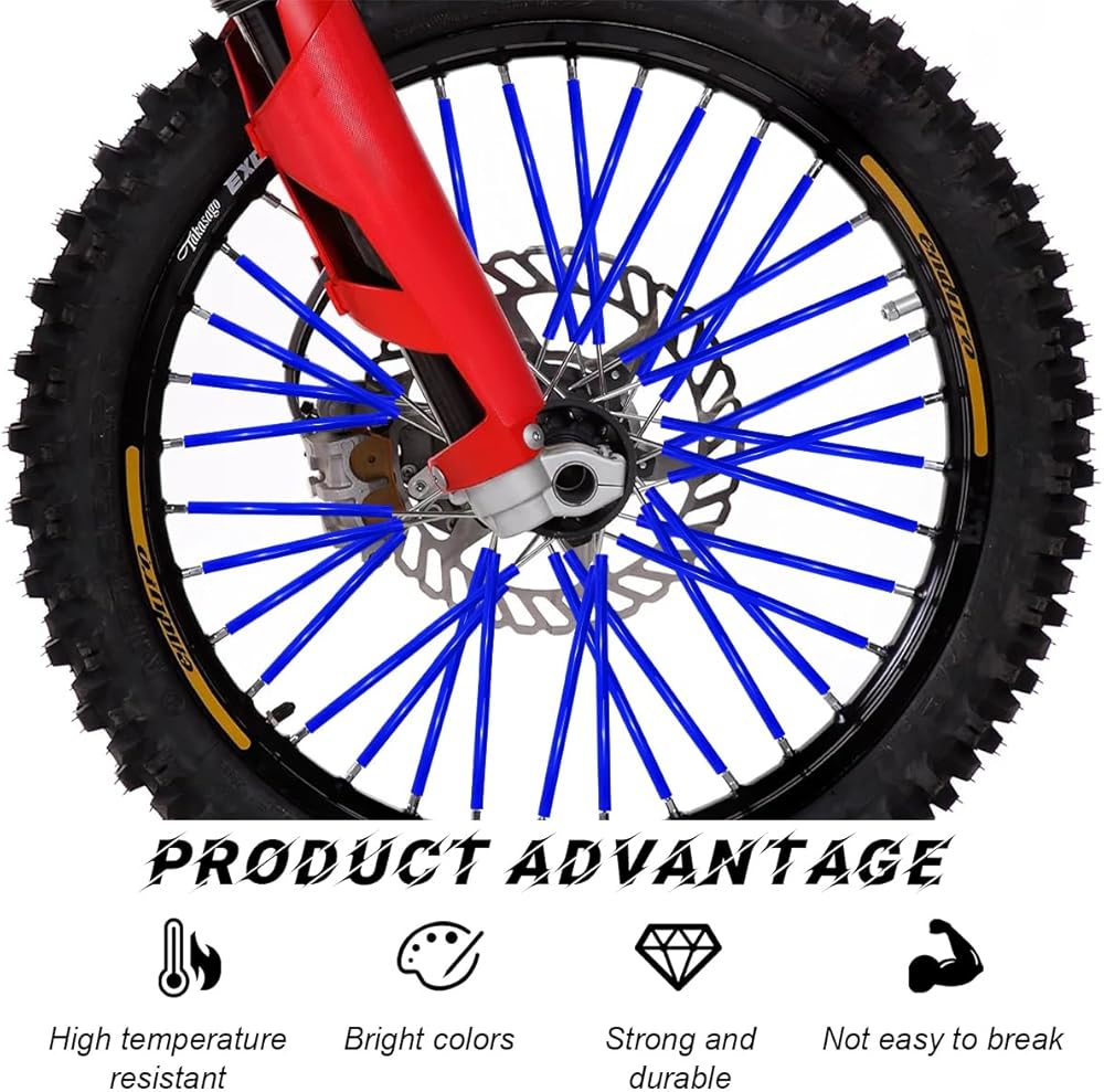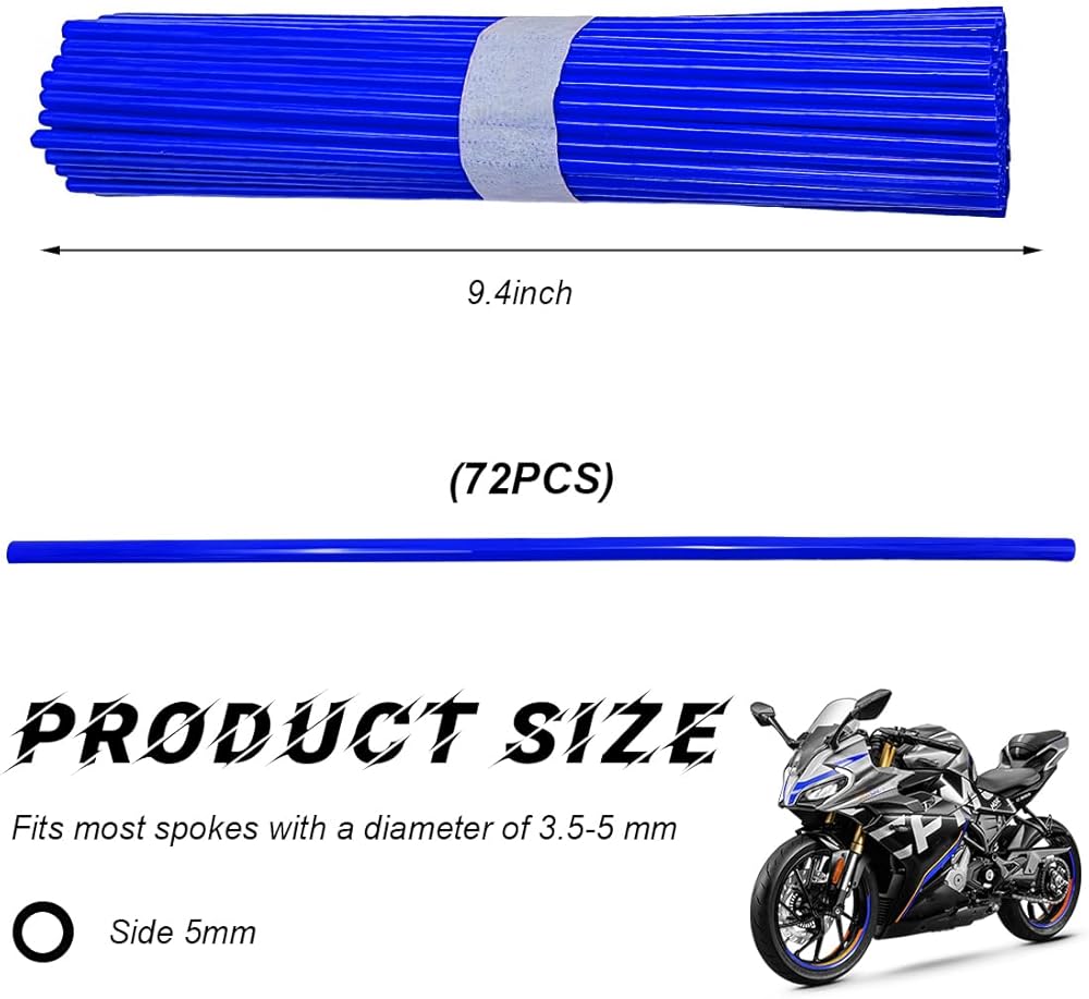 Wide Compatibility: This kit includes 72 spoke protectors, each measuring 9.45" long and 0.2" in diameter, fitting 3.5-5mm spokes on 8"-21" rims. These wheel rim trims are compatible with most dirt bikes and motorcycles, including models like CR250R, YZ125, KX series, and more