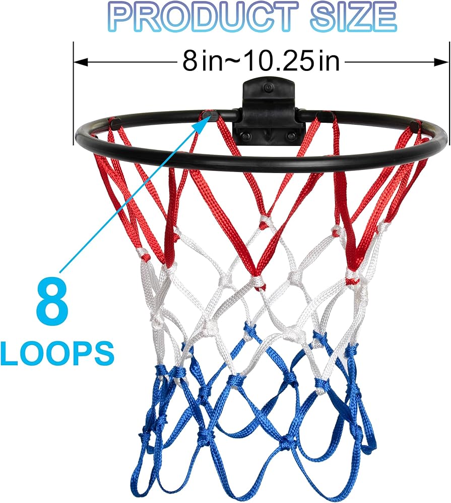 【 Upgrade design 】LAO XUE mini basketball net is suitable for 8""-10.25"" basket replacement net,the application of advanced cross-weaving technology,made of upgraded knotless nylon, can prevent fading and aging"