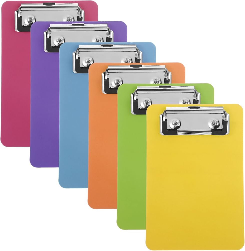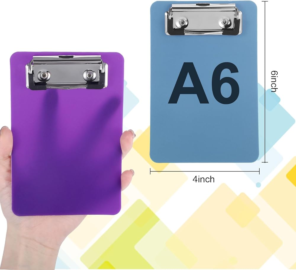 These colorful clipboards are sized to hold A6 size paper.