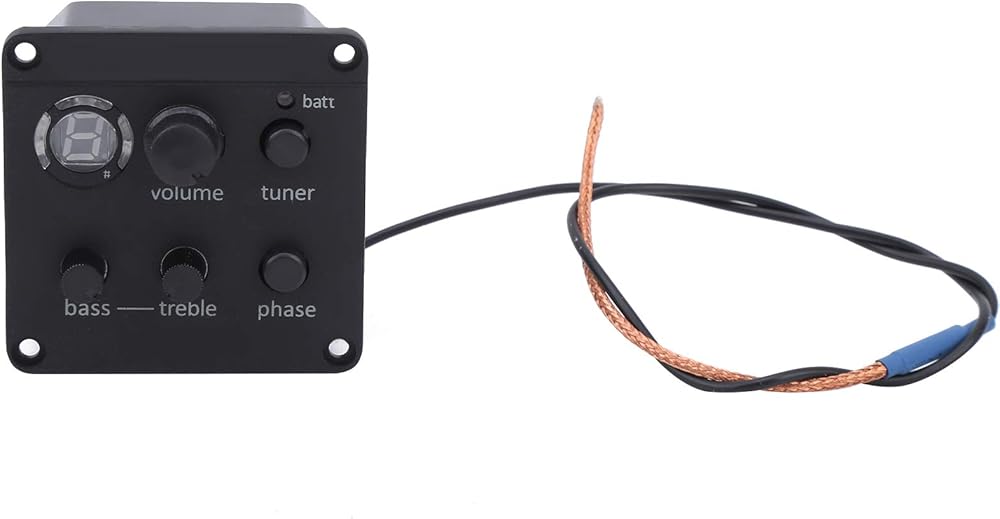 SPACE-EFFICIENT DESIGN:Designed for space-saving versatility, this acoustic guitar pickup combines volume control, EQ tone shaping, and a phase switch in a compact unit, ensuring seamless integration with diverse guitar configurations