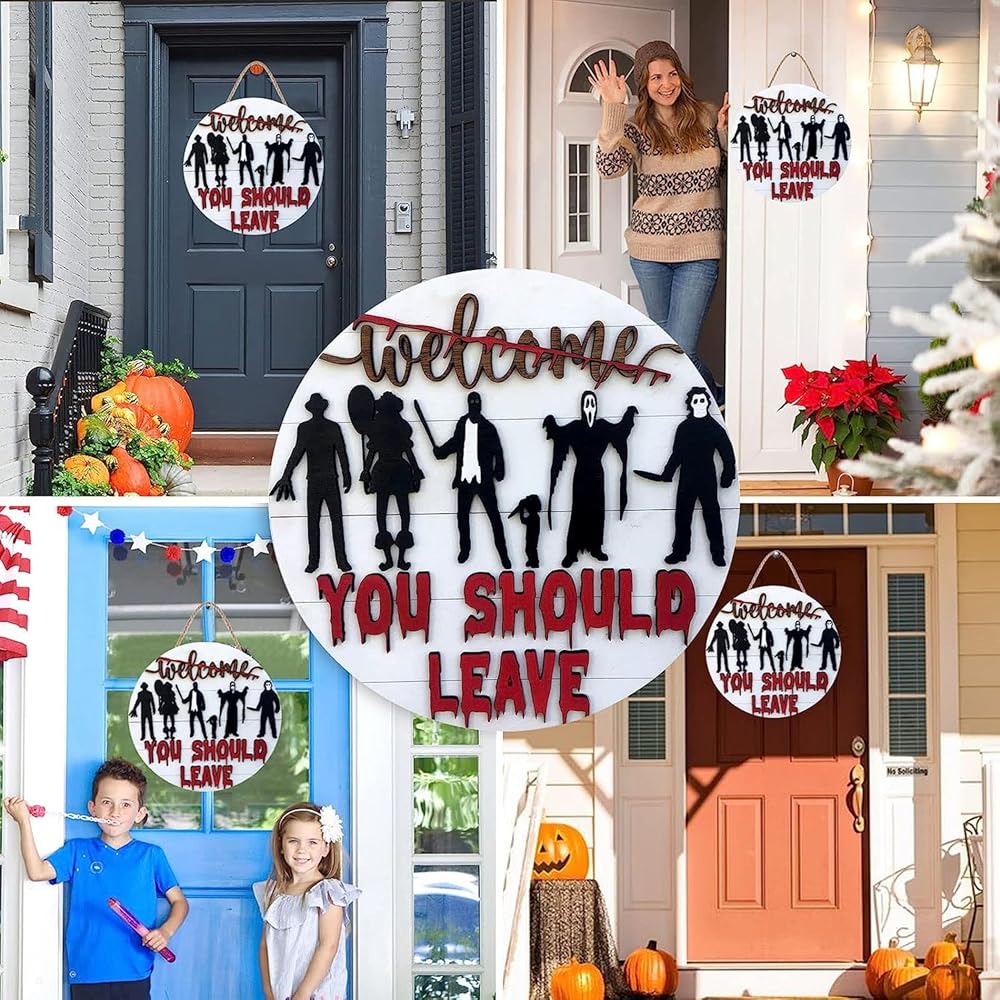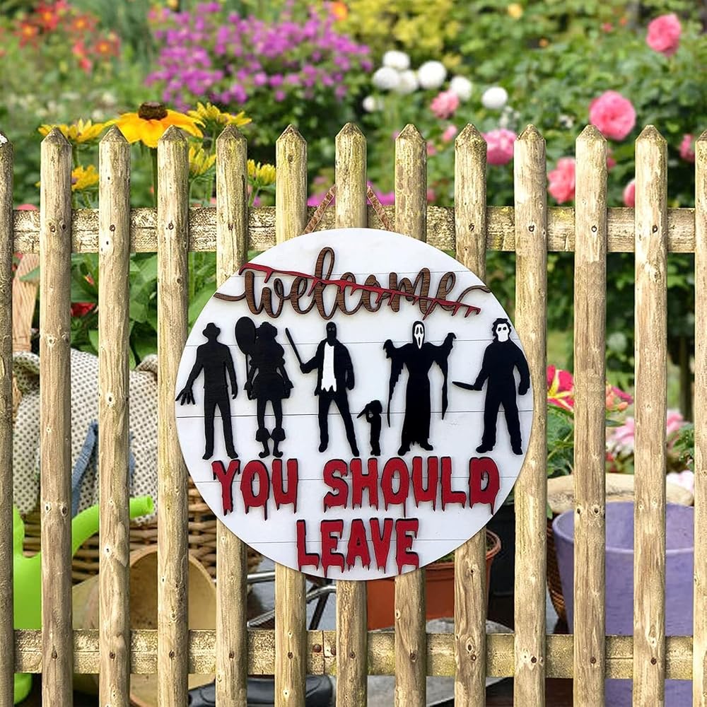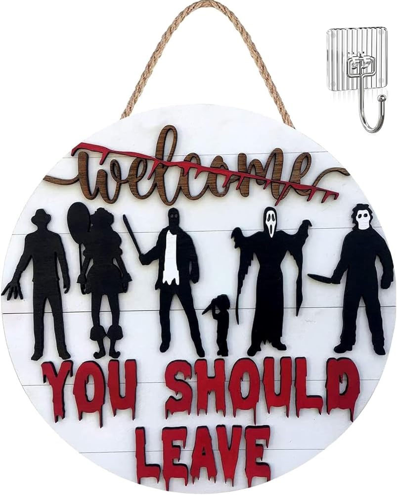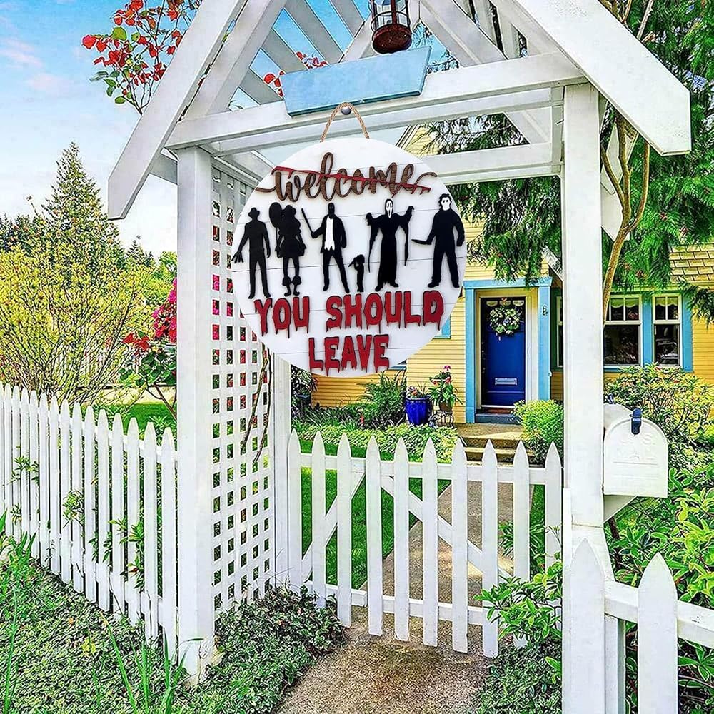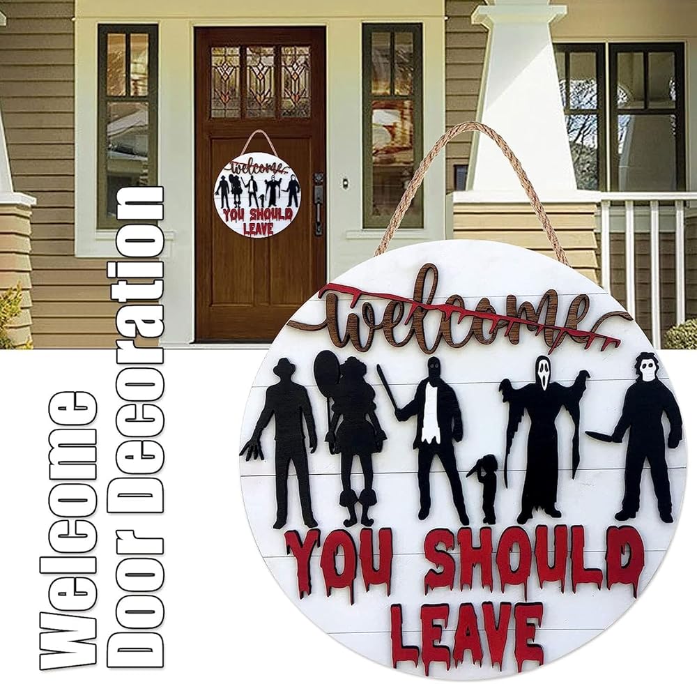 مواد عالية الجودة: لافتة تعليق للباب الشرير من فيلم مخيف مصنوعة من خشب عالي الجودة، جميع اللافتات مصنوعة يدويًا، سميكة وقوية، ويمكن استخدامها لفترة طويلة