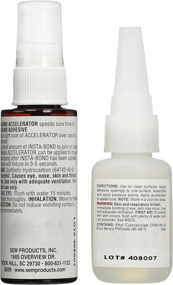 The Instabond Kit is a combination of methacrylate adhesive and accelerator for instant bonding of small parts.