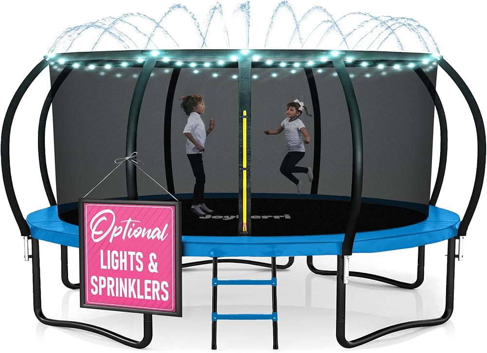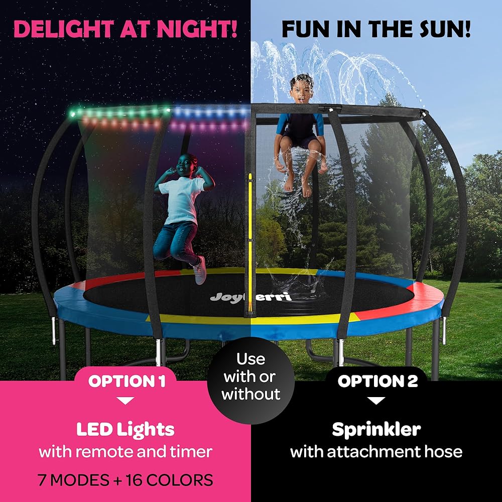 JoyBerri Trampoline - 10 Ft, Trampoline with LED Lights - Kids Outdoor Recreational Trampoline for Kids and Adults/ASTM/Trampoline with Safety Enclosure Net/Large Trampoline for Adults