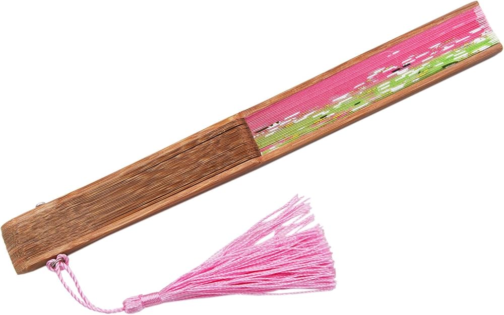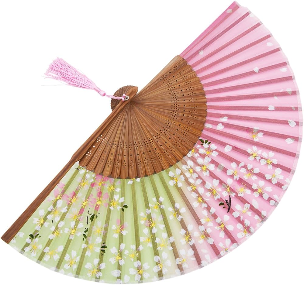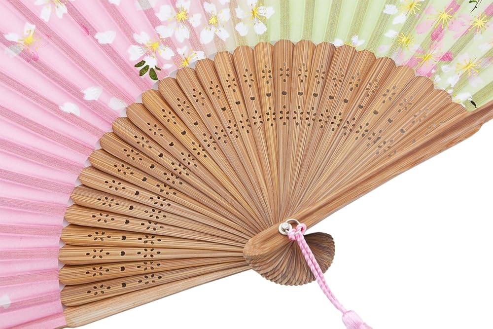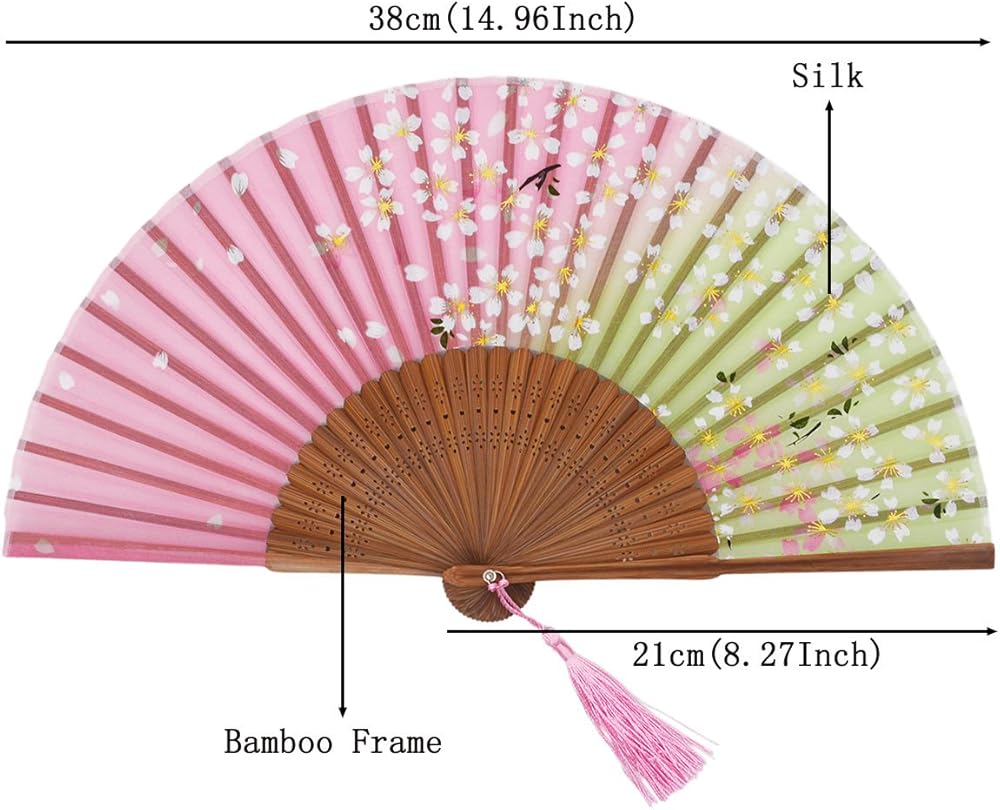 الخامة: صناعة يدوية، مصنوعة من أقمشة حريرية وإطارات من الخيزران الفاخر. كل مروحة قابلة للطي مزودة بشرابة أنيقة وأكياس حريرية مصنوعة يدويًا، مما يحافظ على المروحة آمنة ومغلقة عند عدم الاستخدام.