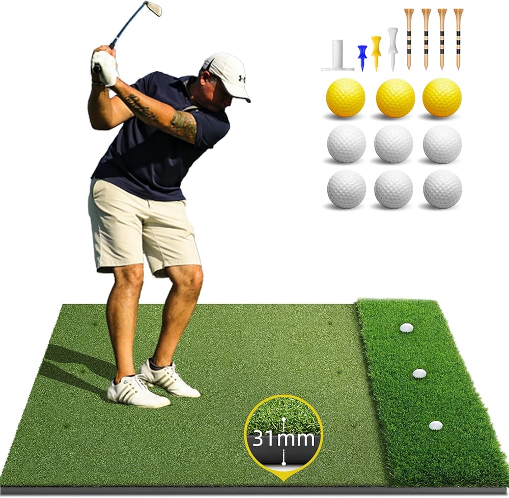 Heavy-duty Construction for Maximum Durability: Engineered with reinforced edges and anti-tear EVA base, this golf mat withstands thousands of swings without wear—built for commercial-grade durability. The dense artificial grass resists flattening, fraying, and weather damage – ideal for year-round golf practice mat use