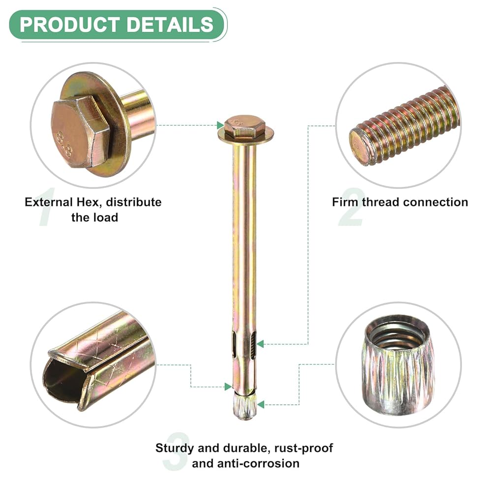 [ميزة] - سطح الخرسانة الجدار المرساة الأكمام ناعمة وخالية من الأشرار. تم تصميم البراغي الملولبة لتكوين القوة المتساوية ، وتوفير اتصالات موثوقة ، وإصلاح الأسطح الصلبة بحزم مثل الخرسانة والبناء. تأتي مسامير التوسع مع المكسرات والغسالات لسهولة التثبيت.