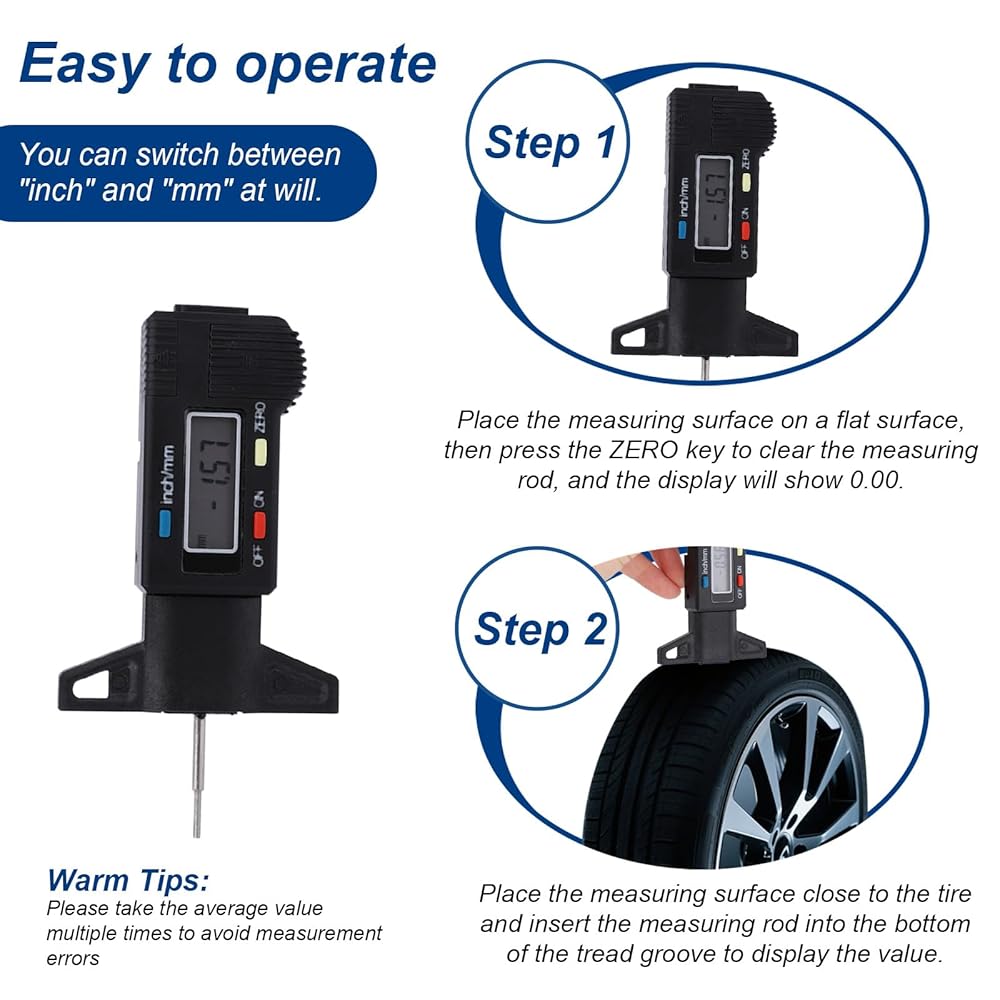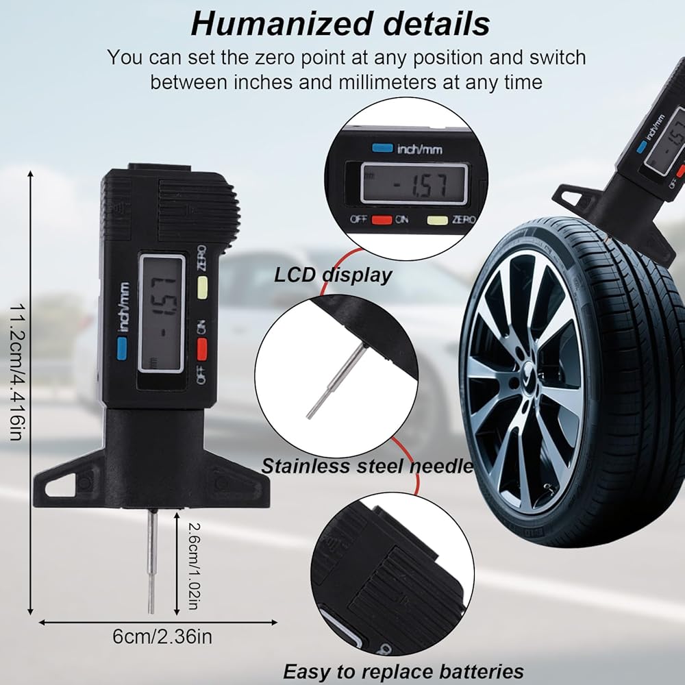 Excellent Design: Equipped with a digital LCD display, the zero point can be set at any position and switched between inches and millimeters at any time. The ruler quickly identifies the tire wear stage with instant visual feedback, so as to make the best driving safety decisions.