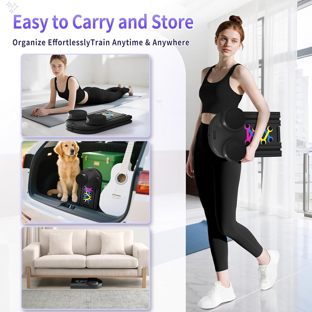 【 Foldable and Portable Pilate Reformer】Compare to the costly and bulky pilates machines.This lightweight, foldable pilates board is more space-saving and easy to carry. You can do your pilates exercise anywhere, whether you are at home, in the office, or traveling .A game-changer for your home workouts