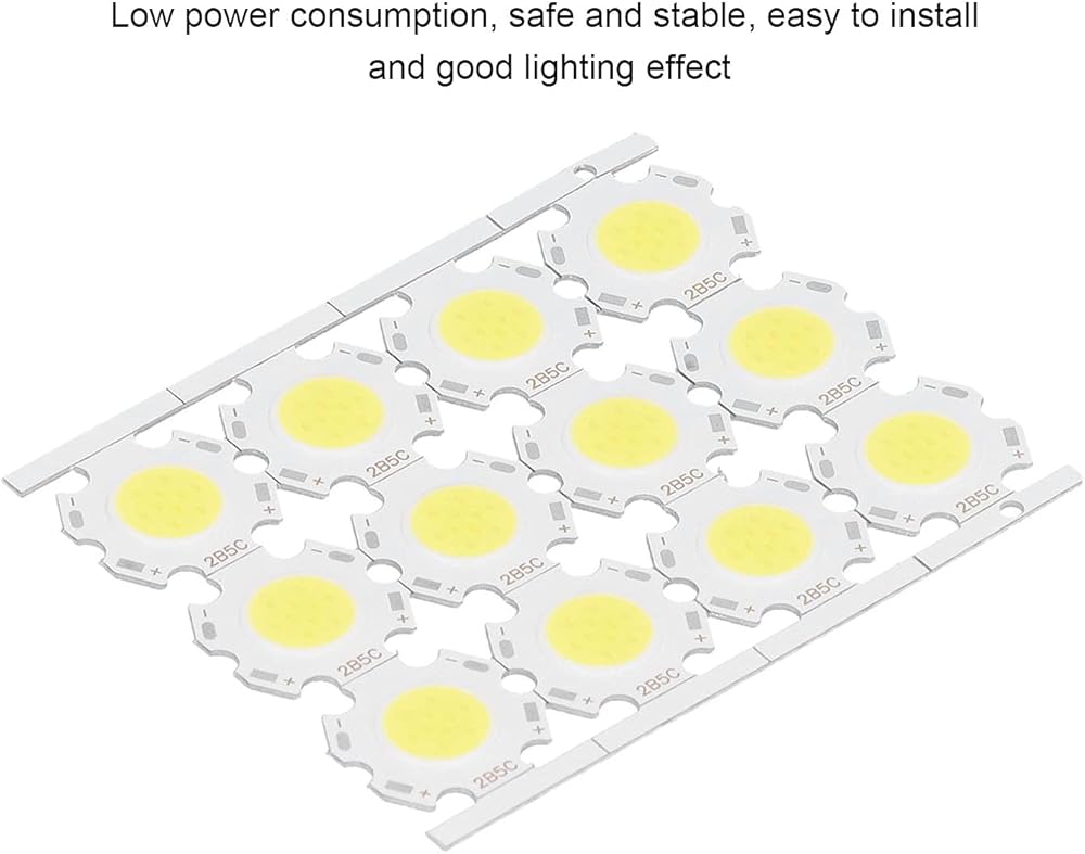 [Energy Efficient] With a low power consumption of just 5w and a luminous flux of 450lm these led chips deliver bright and efficient lighting while saving energy. the cob technology ensures a wide irradiation area making them for night lighting.