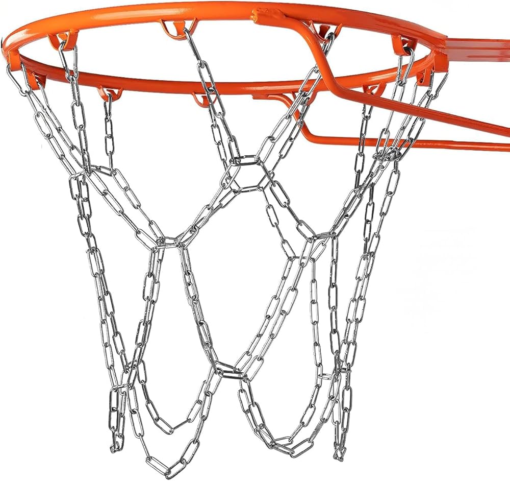 نظام السلسلة المعدنية القوية من 12 حلقة الشبكة المعدنية (طول 45 سم) يناسب الأطواق القياسية 48 سم لكرة السلة ، مما يقلل من التشابك مع توفير الصوتيات الأصلية