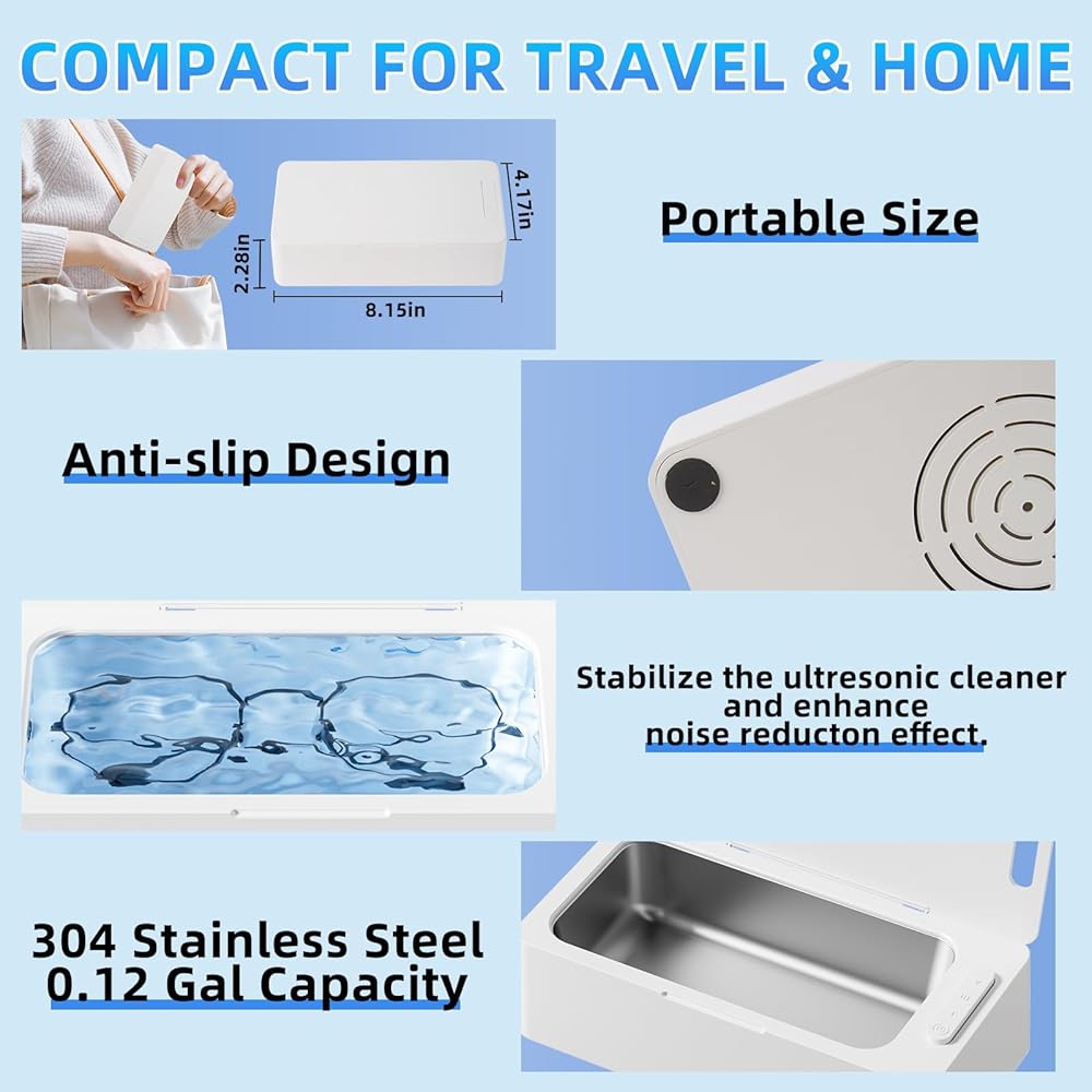ضوضاء منخفضة وحماية فوق الحرارة: مصممة بمواد سميكة و 4 منصات مضادة للانزلاق ، هذا منظف المجوهرات بالموجات فوق الصوتية يقلل من الضوضاء لتجربة أكثر هدوءًا. انها تبديد الحرارة فعالة والتهوية لتحسين عمر خدمة آلة نظافة التجنيب.