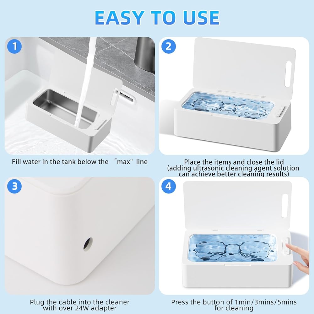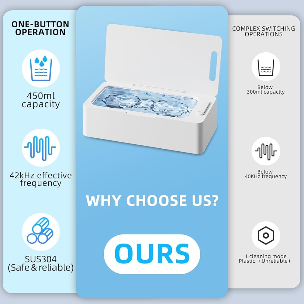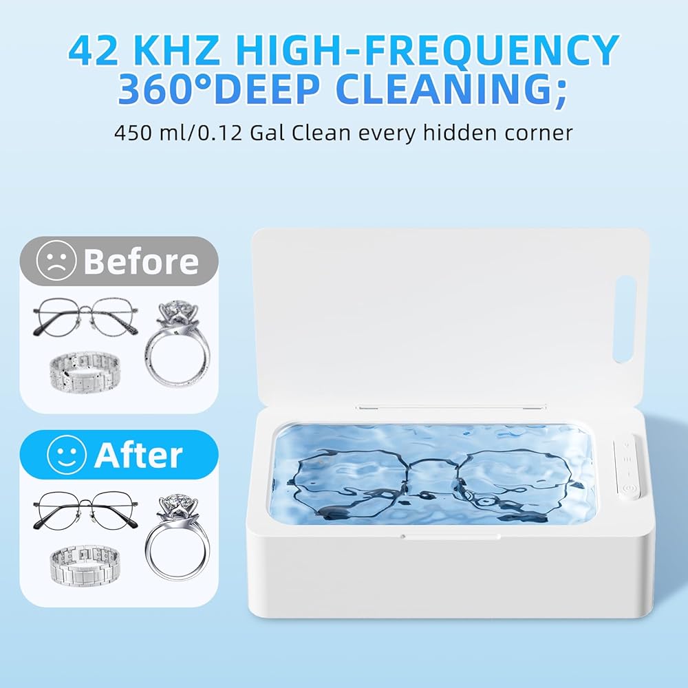 تقنية الموجات فوق الصوتية المتقدمة: تستخدم آلة الأنظف 42 كيلو هرتز (مثالية للتنظيف الآمن والعميق) وأمواج صوتية 24 واط لتوفير نظافة عميقة ولطيفة 360 درجة لجميع المجوهرات ، ونظائر النظارات ، وخاتم الخطوبة الماسي ، والفرشاة الشمسية ، والعملة المعدنية ، والفضة ، والذهبية ، والدرج ، واتجاهات السقوط ، وتجهيزات الأسنان ، وفرشاة الأسنان. لا يتطلب سوى ماء الصنبور تنظيف المجوهرات القذرة في غضون دقائق ، دون إزالة التشويه (إضافة محلول تنظيف الموجات فوق الصوتية يمكن أن يحقق نتائج تنظيف أفضل).