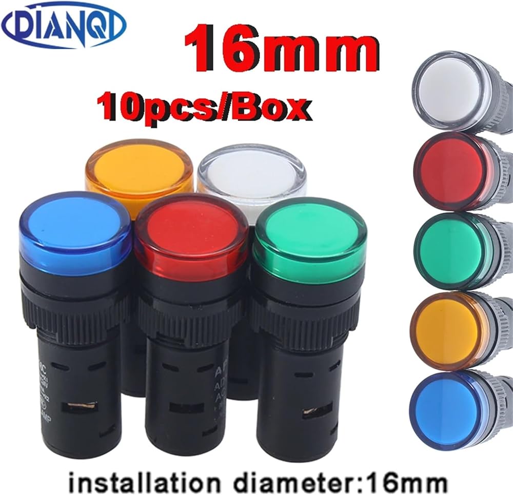 10pcs/lot Plastic Panel Mount Signal Power LED Indicator Lamp Diameter 16mm LED Signal Light 24V12V220V Red Green Yellow Blue