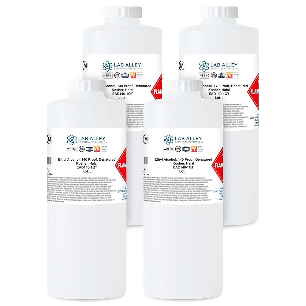 VERSATILE APPLICATION: From use in the pharmaceutical industry to non-food sanitization applications, Lab Alley provides high quality, reliable 140 proof denatured ethanol, ideal for your laboratory and manufacturing needs.