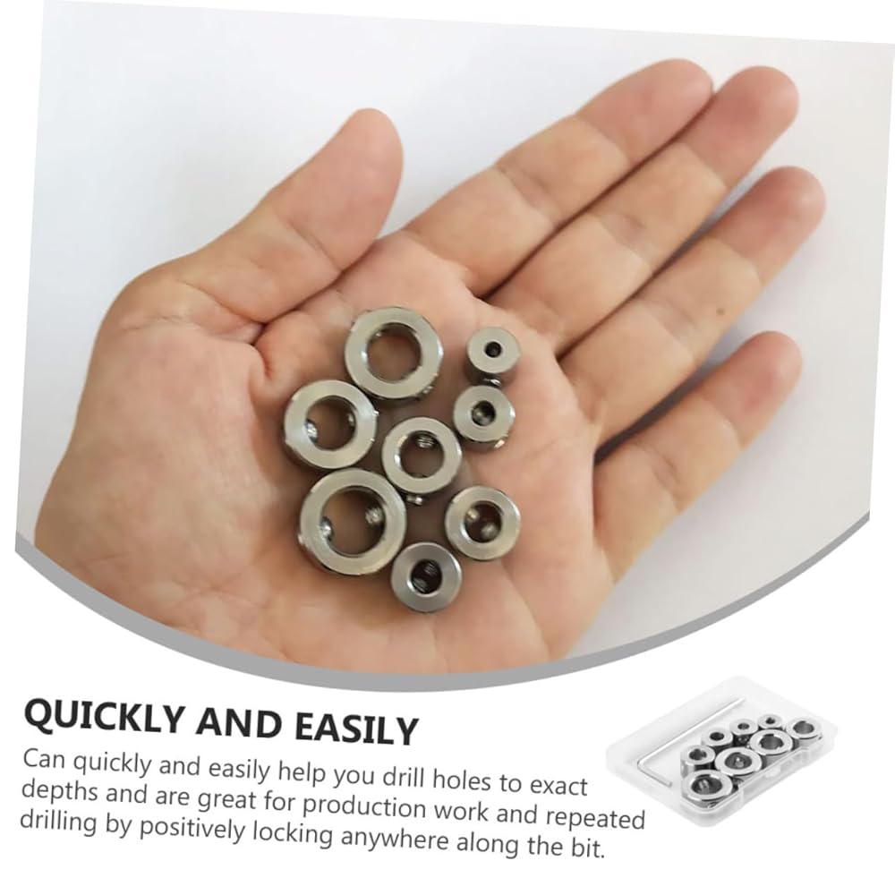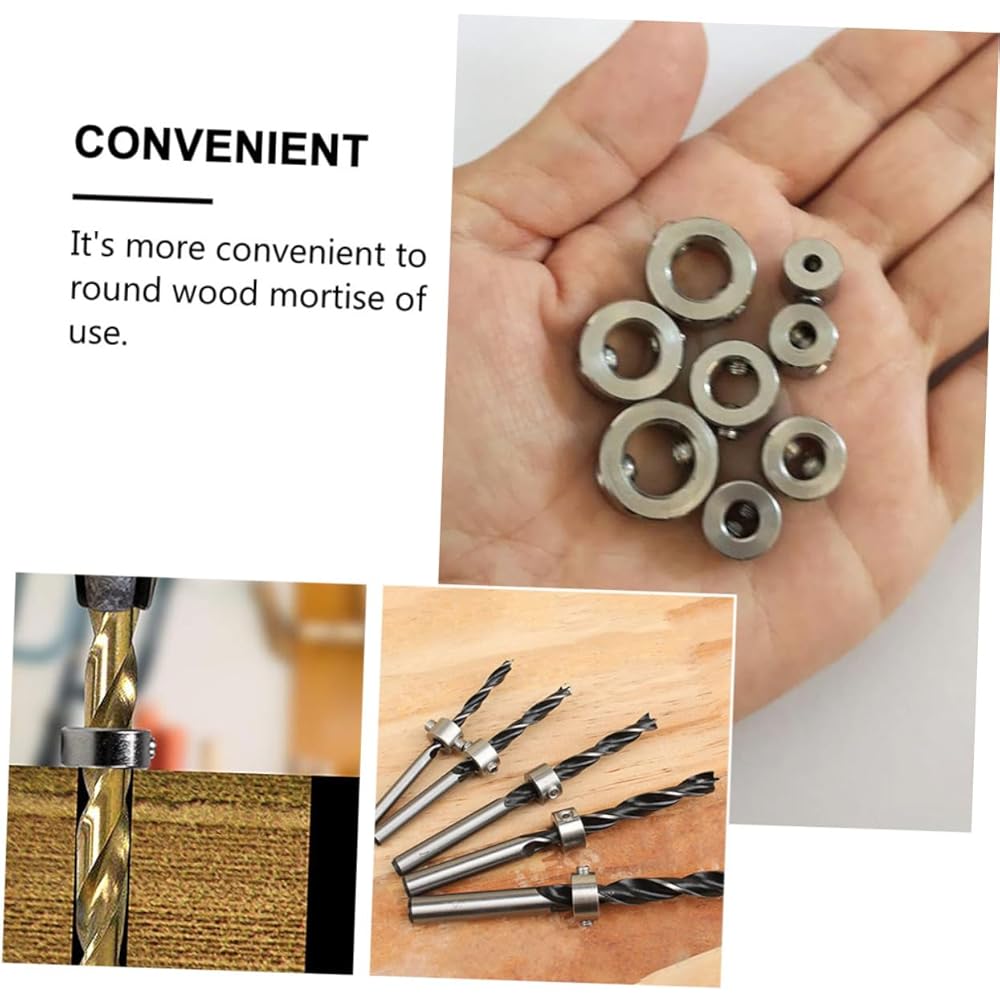 Package List 8 x Drill Bit Collars Characteristics - Specification: 3, 4, 5, 6, 7, 8, 9, 10mm Woodworking Drill Bit Locator. - Size: 1.70X1.00X0.80cm/0.67X0.39X0.31 inch Drill Bit Positioner. - Assorted sizes: 3mm, 4mm, 5mm, 6mm, 7mm, 8mm, 9mm, 10mm Woodworking Drill Bit Positioner. - Material: Stainless steel Metal Drill Bit Positioner. - Color: Silver Drill Bit Collar. - This drill bit depth stop collar is widely used for woodworking drill bit consistent drilling Woodworking Drill Bit Ring. - Mainly for fixing the drill bit, limited the depth of drill holes, make depth of the hole consistent Woodworking Drill Bit Collar. - This depth stop collar can be locked anywhere along the bit, widely used for high carbon steel drills Drill Bit Ring. - Fine workmanship and creative appearance ensure its popularity and practicality Metal Depth Stop Collar. Goods Description drilling bit ring Bit rings are used as a shaft collar on machinery and can be used on drill bits or brad point drills or any type of bit to prevent excessive drill bit penetration and for any jobs that uses a bit and needs precision