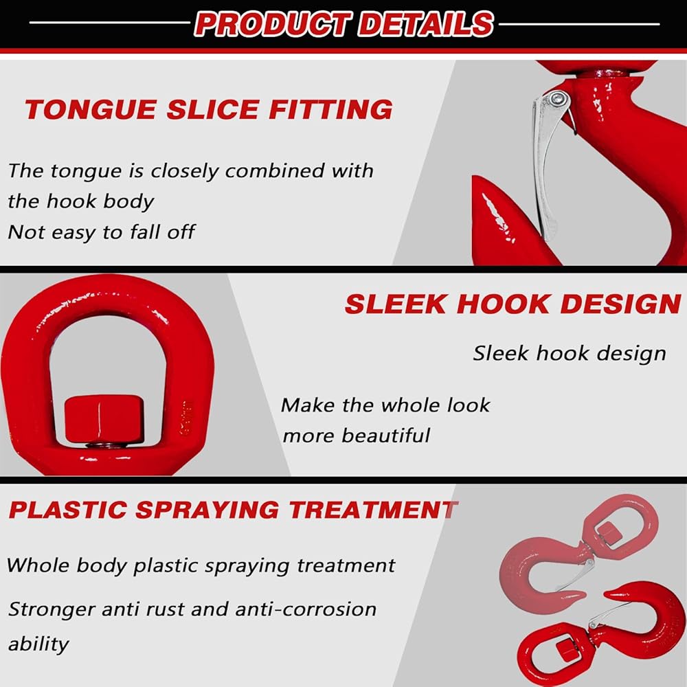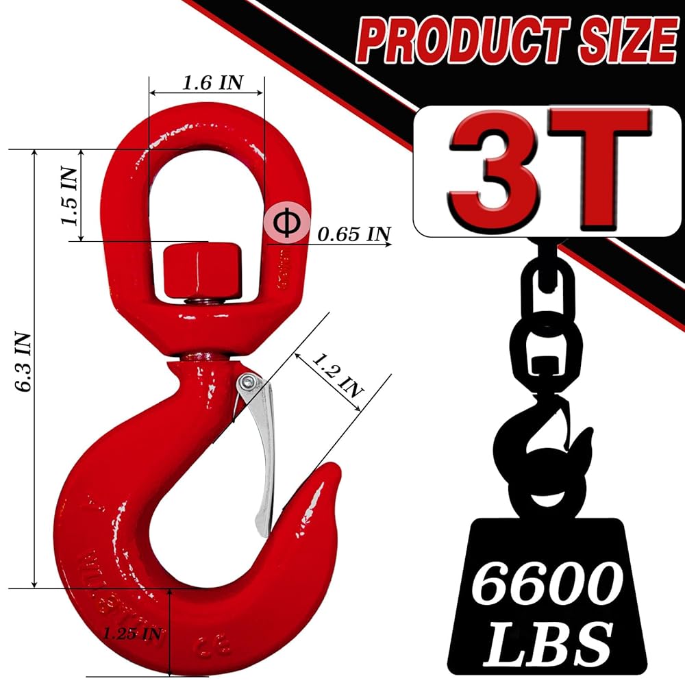 خطاف رفع الدوران في 3TON LOAD: يتم تصنيف خطافات الدوران للتعامل مع الأحمال بأمان حتى 6600 رطل (3 أطنان) ، مما يضمن أداء وموثوقية قوية