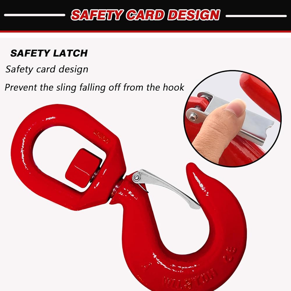 360 خطافات رافعة دوارة: التصميم الدوار 360 درجة يحيد بكفاءة قوة الدوران التي تم إنشاؤها أثناء الرفع. تسمح لك هذه الميزة بضبط زاوية الرفع والدوران حسب الحاجة