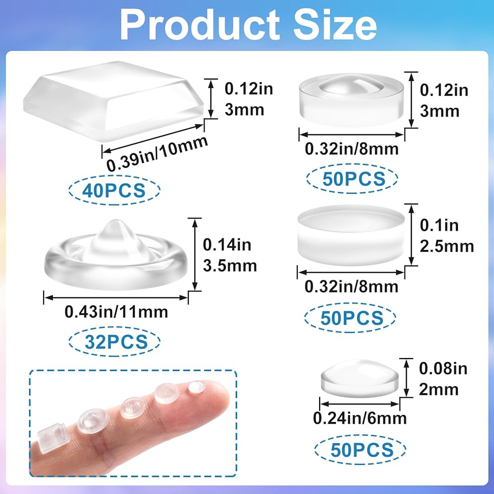 Package Include: Each package contains 222pcs clear bump dots with 5 shapes, round conical, square, cylinder with protrusion. The sufficient quantity and different styles can meet your daily needs of use and replace