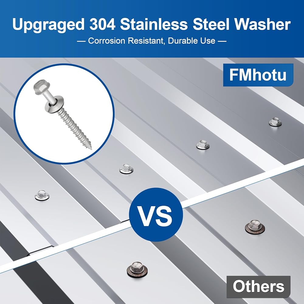 • [غسالة الفولاذ المقاوم للصدأ التي تمت ترقيتها] تشمل غسالة فولاذية مقاومة للصدأ قسطًا يعزز مقاومة التآكل ، مما يضمن أن تظل البراغي خالية من الصدأ حتى في البيئات القاسية. توفر غسالة EPDM أيضًا ختمًا ضيقًا ومقاومًا للتسرب في أي زاوية ، مما يوفر حماية فائقة ضد المياه والأشعة فوق البنفسجية.