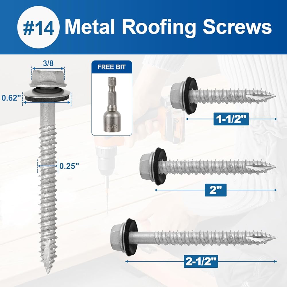 • [تطبيقات متعددة الاستخدامات] مثالية لألواح التسقيف المعدنية ، والتسقيف المموج ، وسقوف القصدير ، وحظائر القطب ، ومشاريع الانحياز DIY. مناسبة لتوصيل المعادن بالمعادن أو المعدن إلى الخشب.