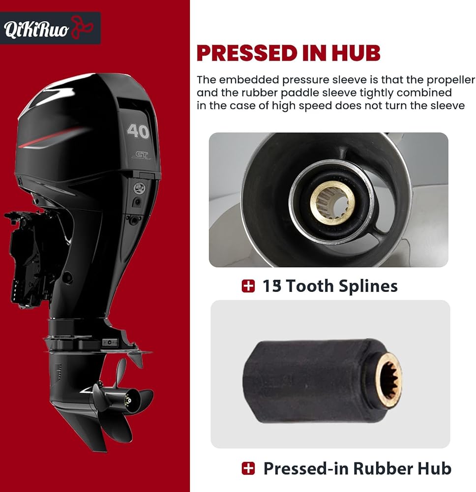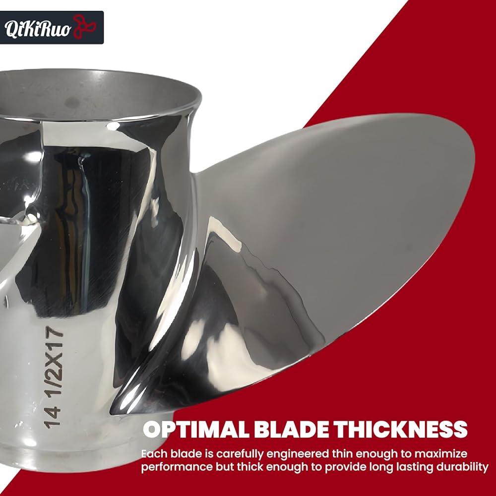 QIKIRUO 150-300HP Stainless Outboard Propeller fit Yamaha Motor 14 1/2X19,14 1/2X17,14x19,13 3/4x17,13 3/4x21,15 Spline Tooth,RH