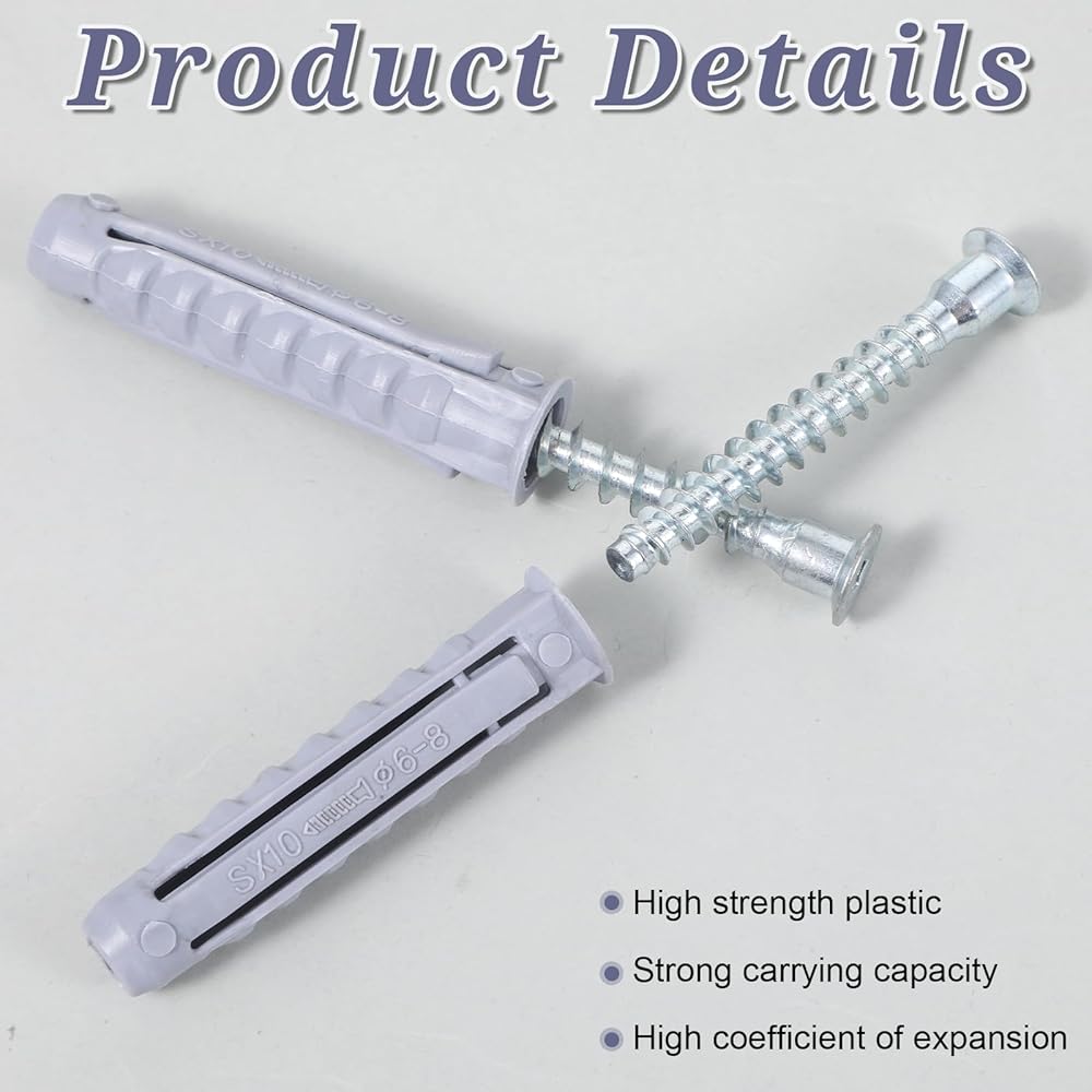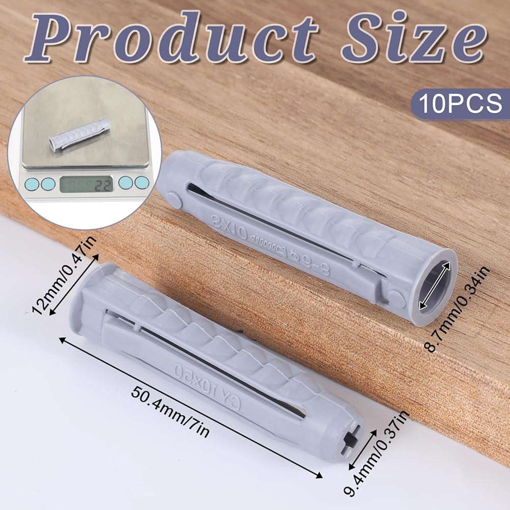 Set Contents: This value pack contains 10 heavy-duty wall anchors (50mm length x 10mm diameter) specifically engineered for concrete and brick surfaces. Note: Mounting screws sold separately. Always verify measurements before purchase to ensure compatibility with your wall thickness and screw size