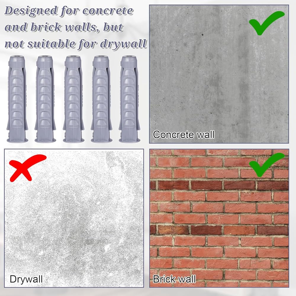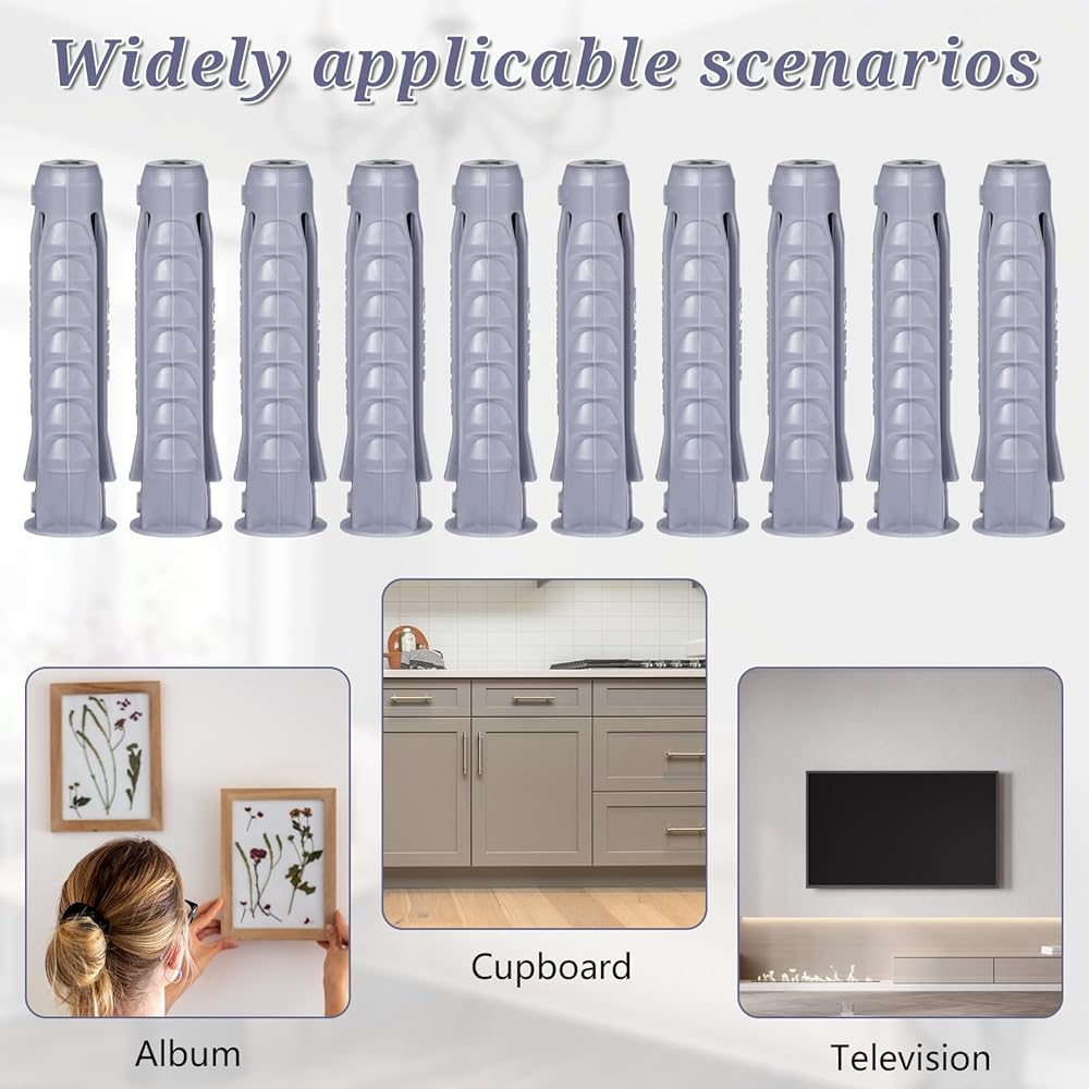 Professional-Grade Load Performance: Engineered with high-expansion polypropylene that withstands: 50% greater pull-out resistance vs standard anchors; Vibration-proof performance for mounted TVs/artwork; Consistent performance in concrete, brick & hollow blocks