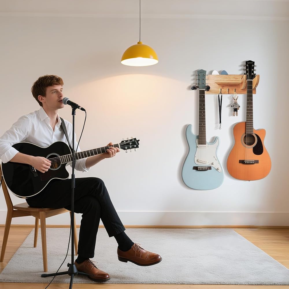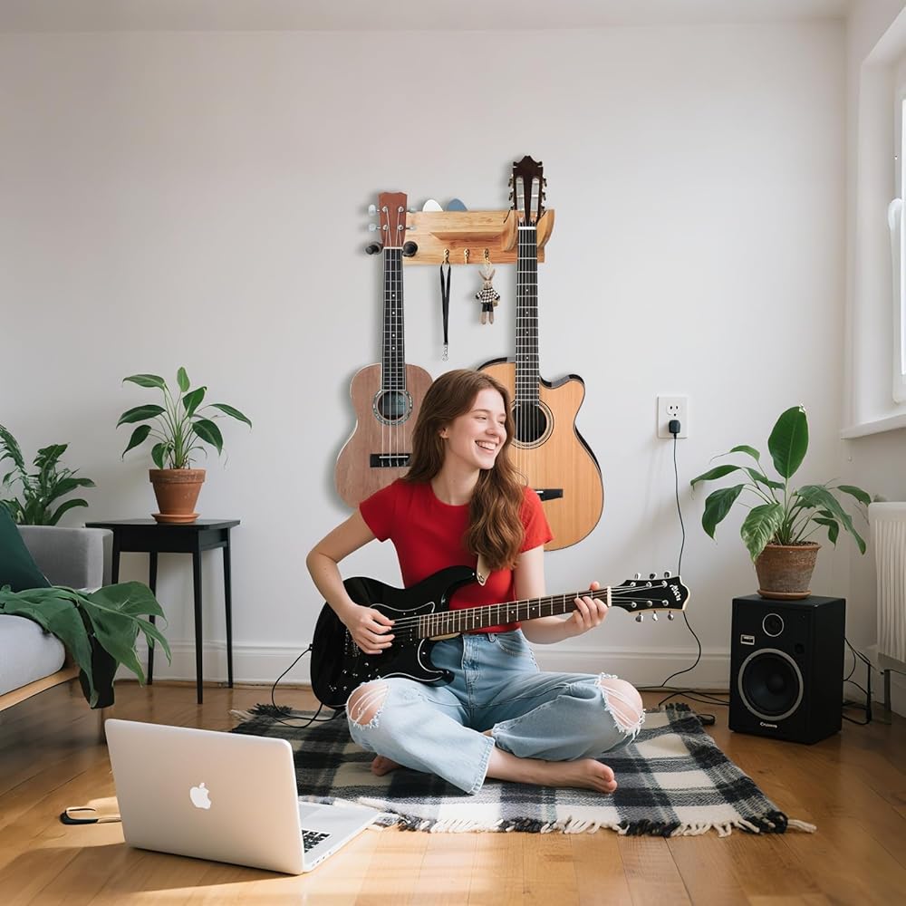 • ✅【𝐈𝐍𝐂𝐋𝐔𝐃𝐄𝐃 𝐇𝐎𝐎𝐊𝐒 & 𝐒𝐇𝐄𝐋𝐅】 يمكن للفتحات العميقة الموجودة أعلى حامل الجيتار تخزين إكسسوارات الغيتار الشائعة ، مثل الاختيارات والموالفات والكابوس ، والخطافات الذهبية الإضافية للأشرطة أو سماعات الرأس ، مع الحفاظ على تنظيم الترس والوصول.