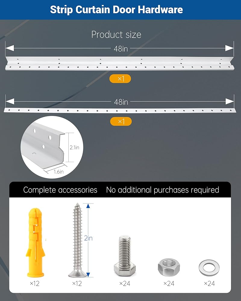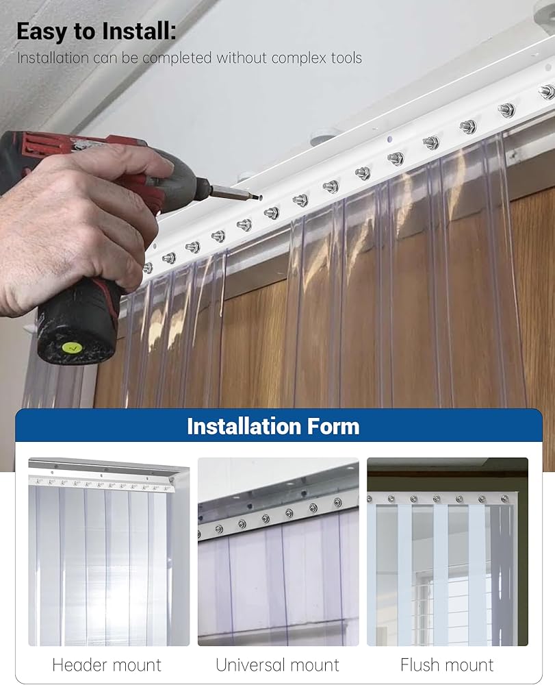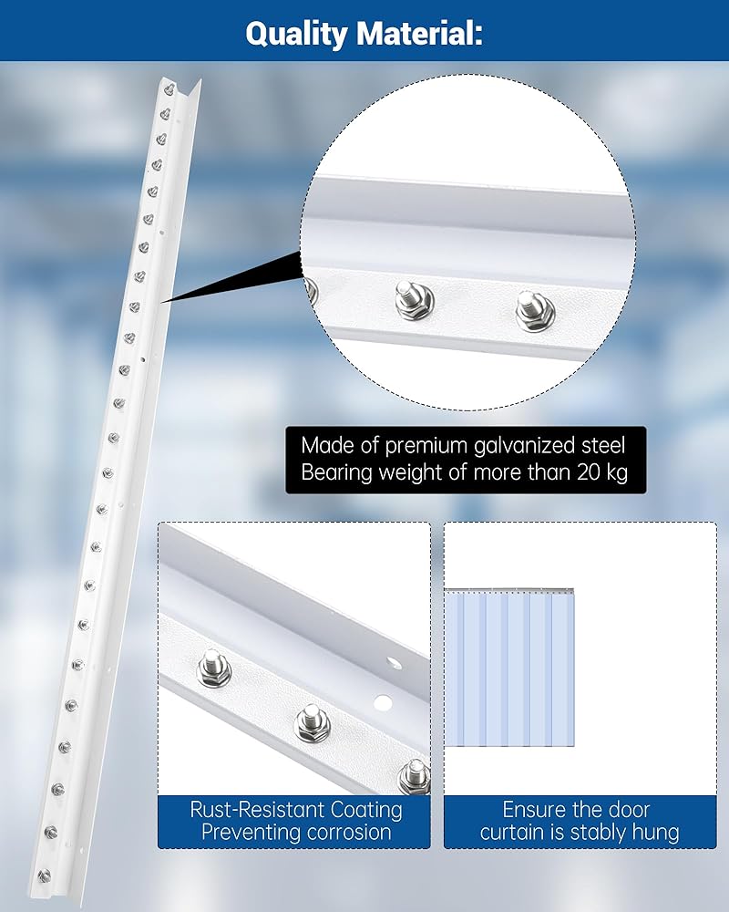 التصميم المدمج قبل الحفر: طول قياسي 4 أقدام وتباعد ثقب دقيق بحجم 2 بوصة ، يناسب ستائر الأبواب ذات الأحجام المختلفة ، ويمنع الستار من السقوط بسبب التباعد المفرط بين ثقوب التثبيت ، والتصميم المسبق للحفاظ على التثبيت أسهل