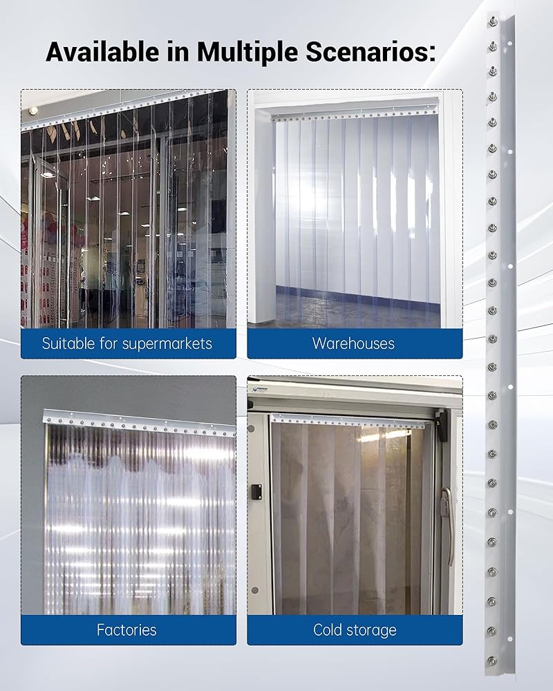 نظام عالمي متعدد المسننيو: يتم استخدام أجهزة باب الستار الشريطية لتعليق الستائر المقاومة للتربة ، وتنسيق الحرارة ، والمنسخات القسمة (مثل الستائر الأبواب الناعمة PVC ، والستائر البلاستيكية الشفافة) ، ومناسبة لأبواب الشرفة/المرآب/المستودعات.