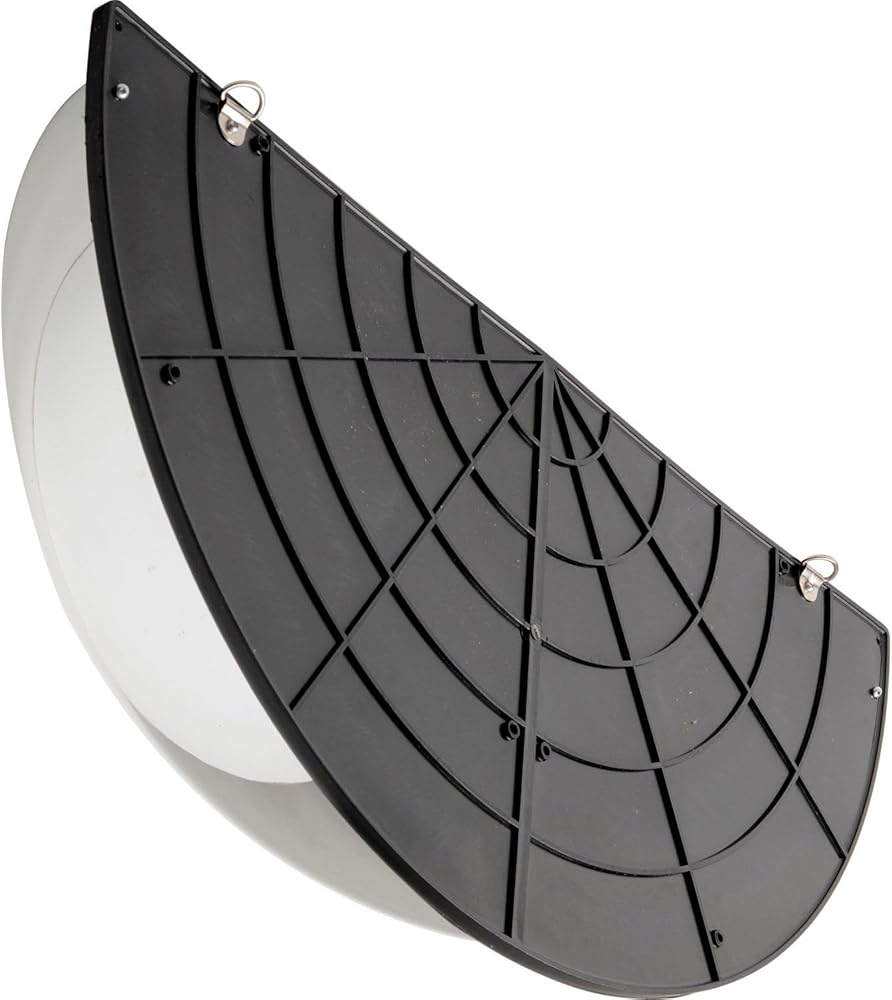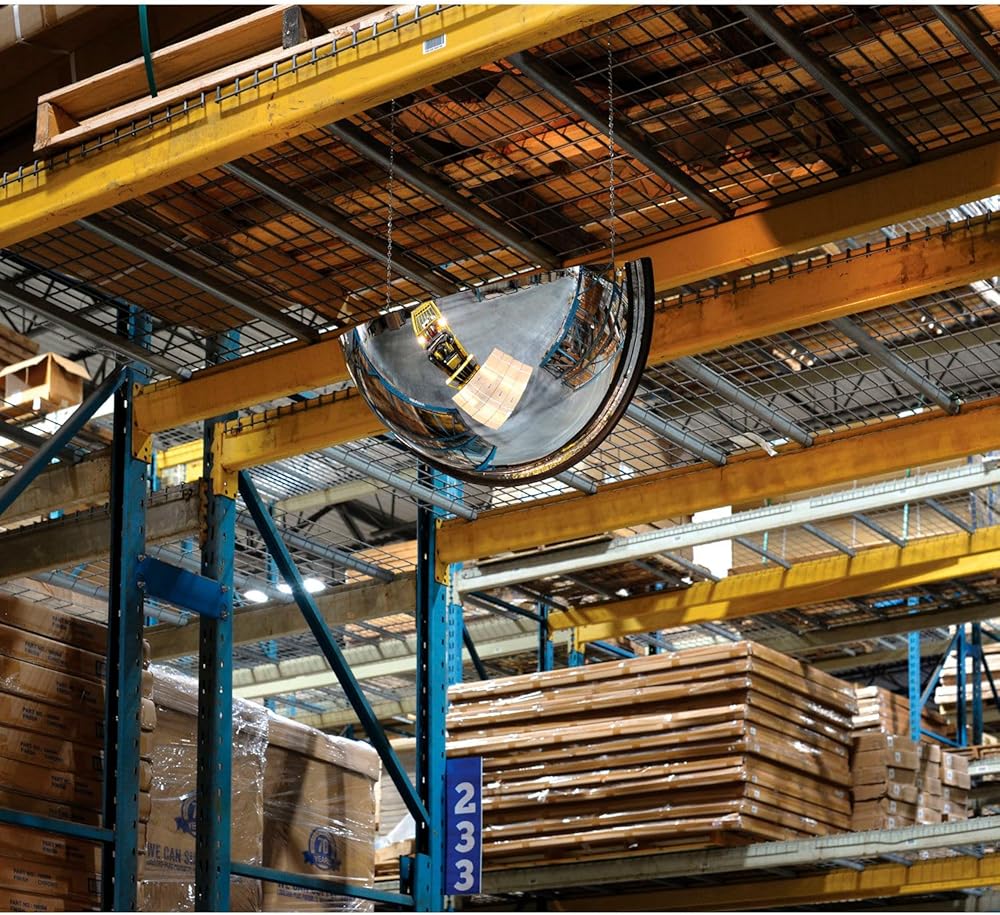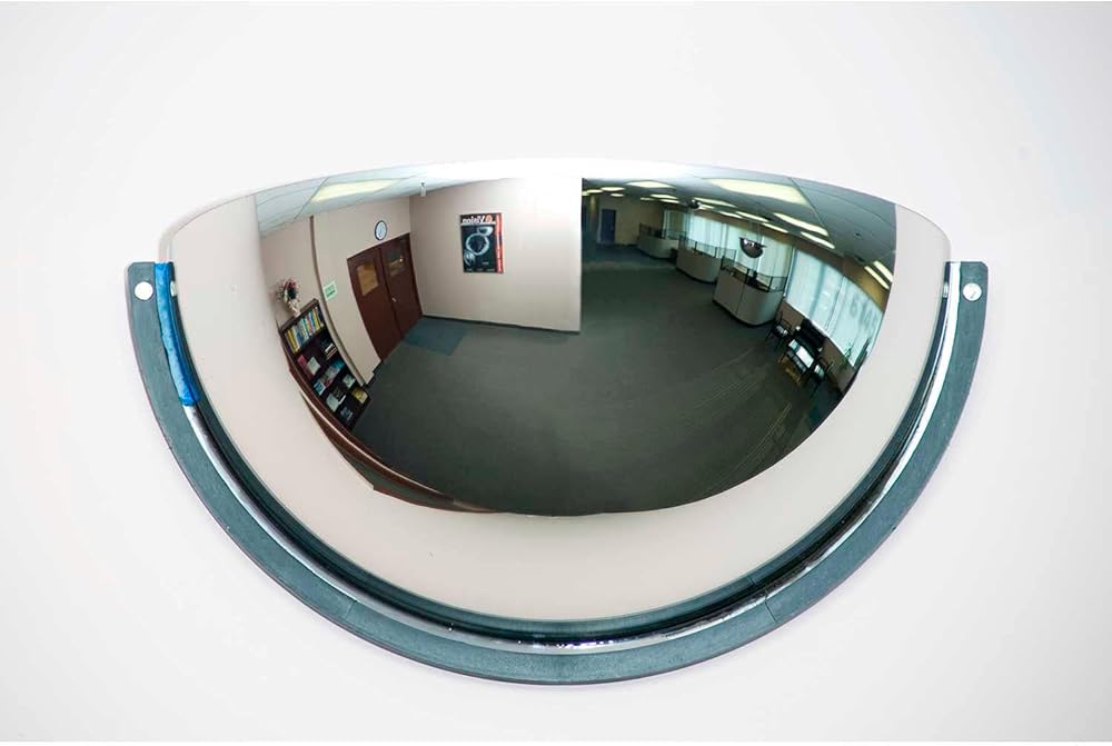 This lightweight, half-dome mirror provides an unobstructed view of areas that you can't see in the workplace. The acrylic surface of this magnified mirror is impact-resistant and durable. Mirror is build with a molded plastic backboard for added safety and enhanced appearance. This mirror will help prevent costly accidents and assure safety and security of everyone around you. It has a bright panoramic image that aids with personnel supervision, machine monitoring, production and traffic control. Easy to install with mounting hardware included (anchor/fastener not included)., Lot of 1